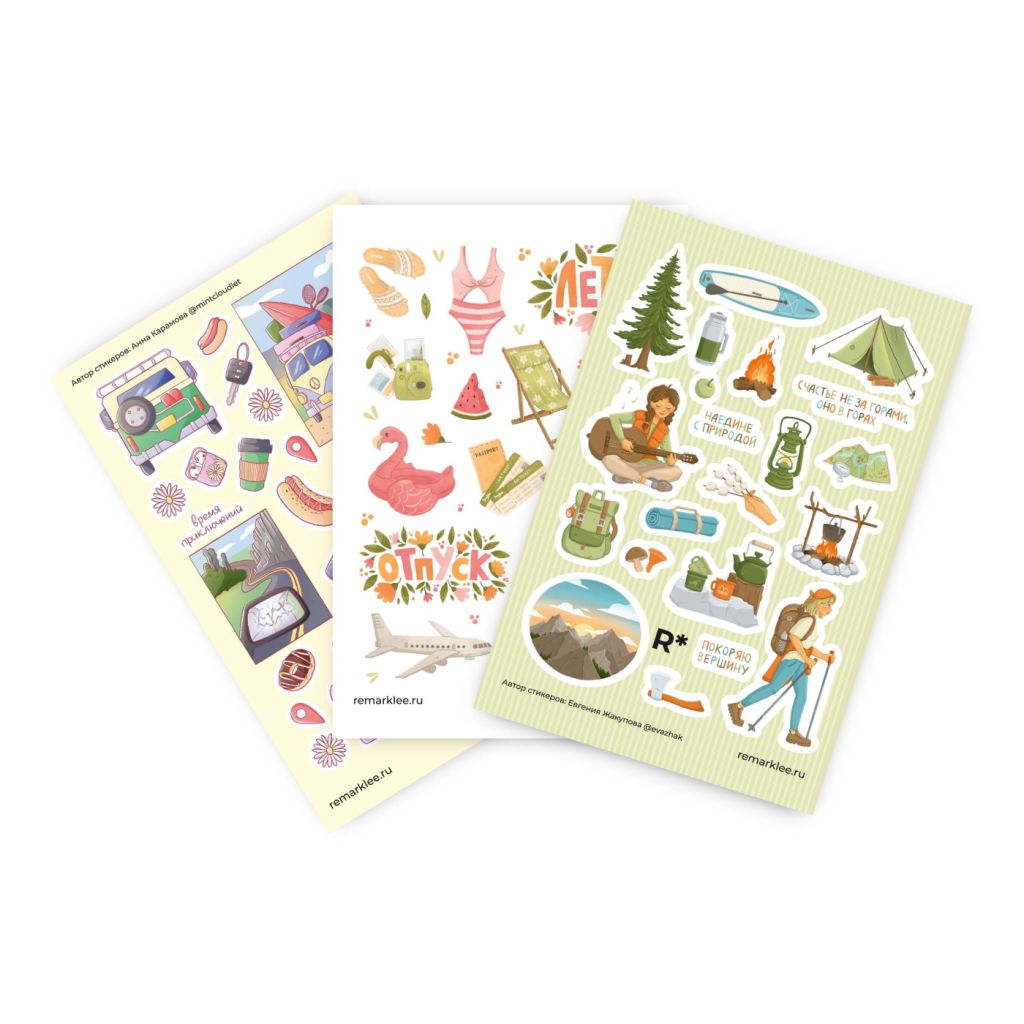 Летний отдых стал еще более ярким и незабываемым благодаря уникальному набору стикеров. В состав входят три неповторимых стикера: «Палаточная романтика», «Розовый фламинго» и «Автопутешествия». Каждый из них подчеркивает тему приключений и отпуска. Эти милые стикеры прекрасно подойдут для оформления планеров, блокнотов и дневников путешественника. В нашем наборе вы найдете наклейки на любой вкус. Проведите незабываемое время, запечатлейте каждый момент и заполните свой блокнот стикерами из набора «Летний отдых»!