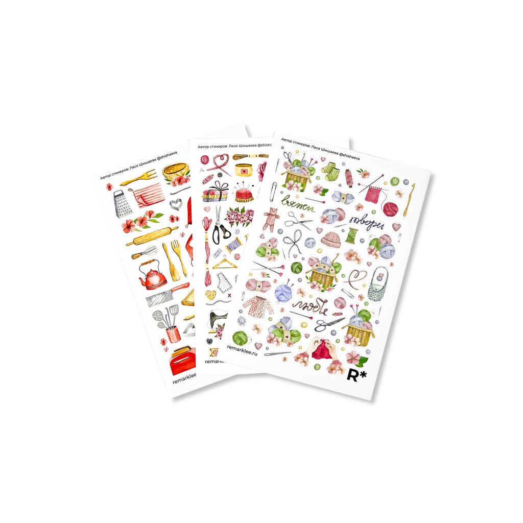 С помощью этого набора стикеров вы сможете с легкостью обозначать свои приятные домашние дела, будь то шитье, вязание или готовка. Каждый стикер пропитан атмосферой того или иного занятия. А интересная рисовка заставляет разглядывать каждую детальку.