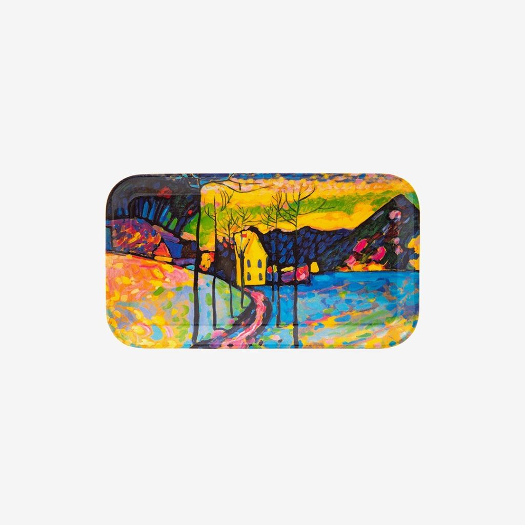 Поднос из коллекции, посвященной наследию Василия Кандинского. Дизайн изделия подсказан картиной «Зимний пейзаж». Яркий предмет сервировки из прессованного бамбука разнообразит ежедневный прием пищи и напомнит о визите в музей.