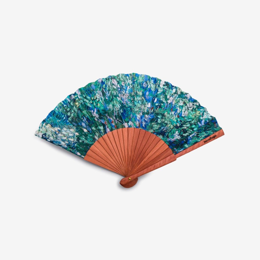 Первый складной веер из обструганных дощечек, складывающихся в гармошку, и специальной прочной бумаги был создан в Японии. Актеры традиционных театров, самураи и монахи использовали этот предмет для танцев, богослужений и даже в бою. В эпоху барокко веер стал настоящим предметом роскоши. Прославленные мастера украшали их фрагментами знаменитых полотен или сюжетами с тайными смыслом. Подобный аксессуар в руках модницы превращался в удобное орудие флирта. В 19 веке в моду вошли страусовые перья и расписные веера постепенно из обихода перешли в область коллекционирования. Современные модные дома на показах haute couture часто используют веера, чтобы добавить образу элегантности. Именно этой цели и служит чудесный веер-сувенир, на котором вы увидите фрагмент знаменитого полотна Ван Гога "Куст", хранящегося в собрании Государственного Эрмитажа.