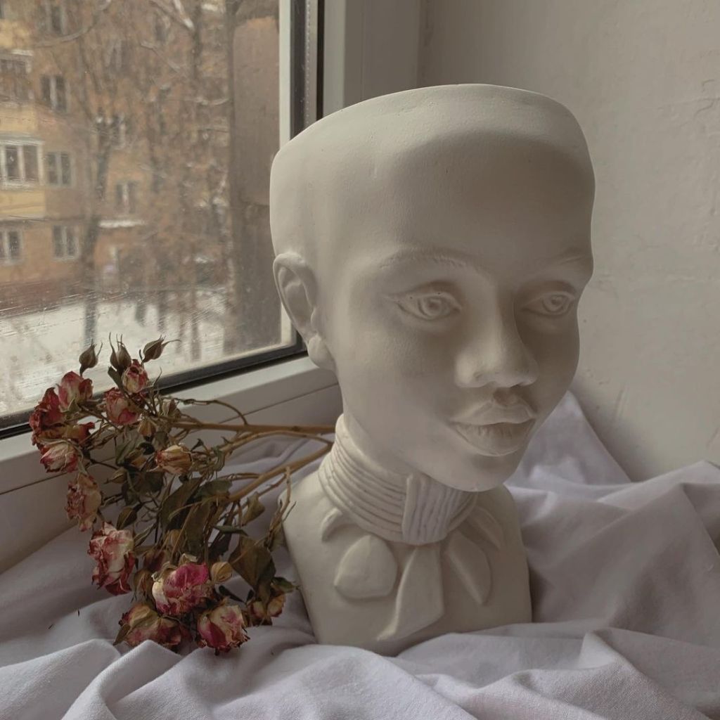Подставка, кашпо или арт-объект — выбирайте сами! Несмотря на то, что подставка выполнена из гипса, она обладает высокой прочностью. Сочетание произведения искусства и практичности делает этот аксессуар не только интересным, но и полезным. Небольшие габариты и внешний вид позволяют вписаться в любой интерьер рабочего места или комнаты, ведь классика никогда не выходит из моды :) Вы можете самостоятельно расписать фигурку акриловыми красками или оставить в первозданном виде. Может использоваться как кашпо, а также отлично подойдет в качестве подставки под кисти, карандаши и прочие мелкие принадлежности. Размер: высота 26 см, длина 15 см, диаметр отверстия 10*11 см, глубина отверстия 12 см.