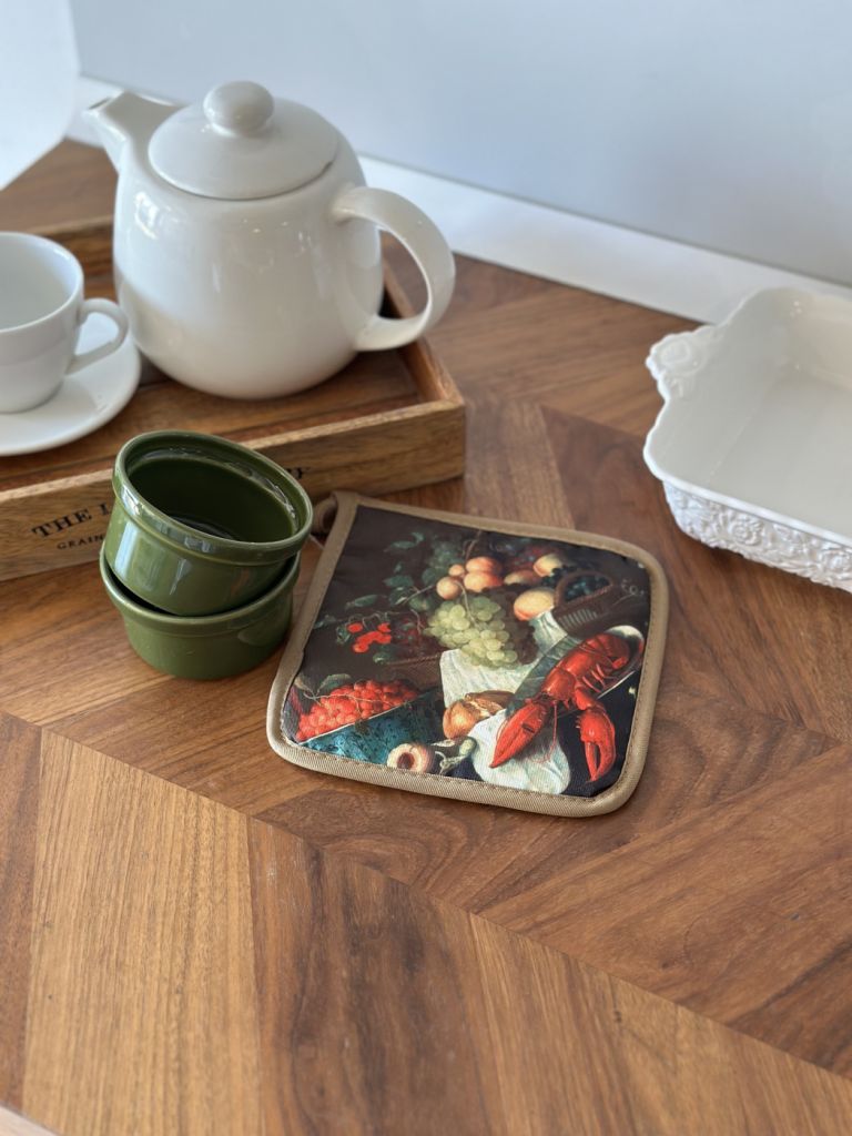 Прихватка, вдохновленная знаменитой картиной Питера де Ринга "Виноград в корзине".