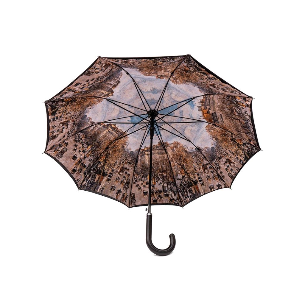 Классический двухкупольный зонт-трость из коллекции, посвящённой мастерам импрессионизма. Удобный и практичный аксессуар, большой диаметр (100 см.) которого позволит надёжно защититься от дождя. Внутренняя часть купола зонта украшена фрагментом картины Камиля Писсарро «Бульвар Монмартр» из собрания Государственного Эрмитажа.