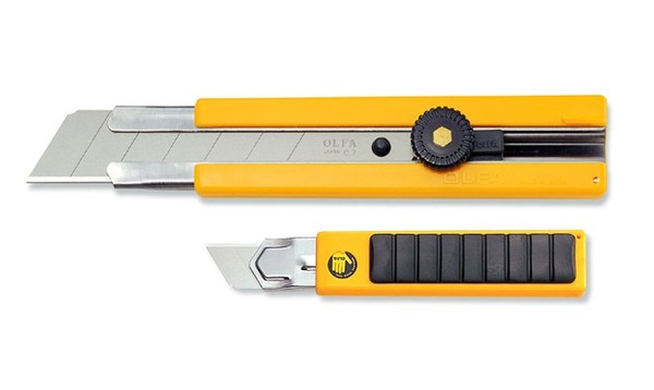 Нож универсальный для сверхтяжелых режимов работы, H-1, разработан специально для разрезания жестких материалов. Назначение: для резки гипсокартона, ковровых покрытий, кожи, резины, фанеры и др. Лезвие: серии HB/HBB/HSWB-1 шириной 25 мм. Вес 0,15 кг. Особенности Корпус изготовлен из высококачественного ABS-пластика и оснащен противоскользящей резиновой накладкой. Направляющие из нержавеющей стали обеспечивают надежную фиксацию лезвия. Трещоточный фиксатор позволяет точно и надежно закрепить лезвие в нужном положении. Нож комплектуется широким и жестким сегментированным лезвием серии HB шириной 25 мм.