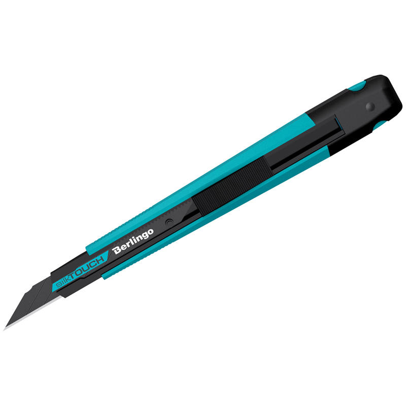 Серия "SilkTouch". Нож канцелярский с автоматической системой фиксации лезвия auto-lock. Корпус ножа выполнен из высококачественного ABS пластика c софт-тач покрытием. Цвет корпуса - бирюзовый. Комплектуется износостойким лезвием черного цвета из стали SK2 с углом 30°. Ширина лезвия - 9 мм. Оснащен металлическими направляющими для плавного движения лезвия.
