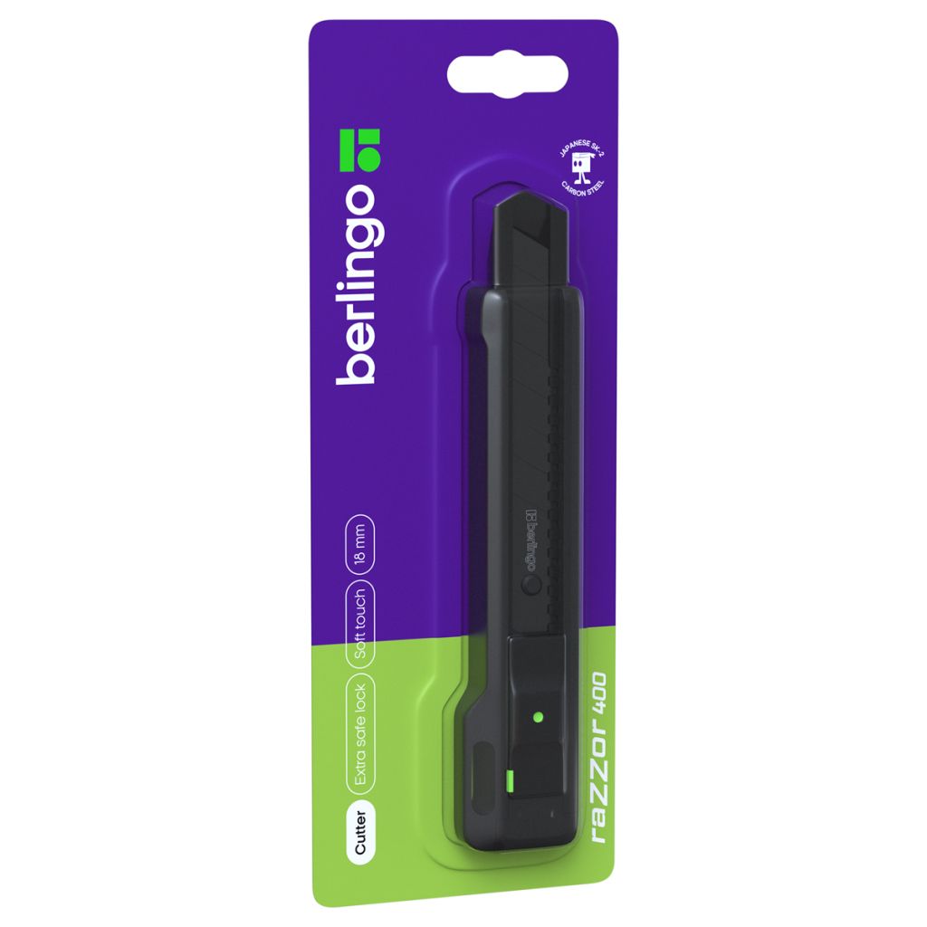 Нож канцелярский с автоматической системой фиксации лезвия auto-lock. Корпус ножа сделан из ABS пластика с покрытием soft touch. Комплектуется износостойким лезвием черного цвета из стали SK2. Ширина лезвия - 18 мм. Модель оснащена дополнительным замком блокировки лезвия.