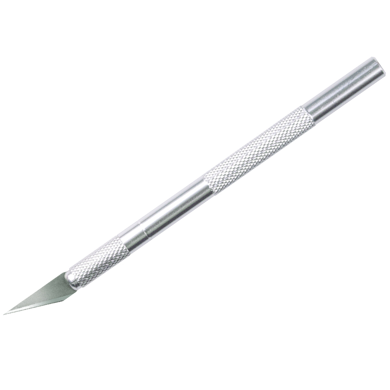 Нож-скальпель предназначен для работы по бумаге. Алюминиевый корпус имеет ребристость в зоне захвата, препятствуя скольжению пальцев. Нож-скальпель оснащен колпачком для безопасного хранения и транспортировки. В комплекте 5 запасных лезвий в пластиковом пенале. Индивидуальная упаковка - блистер с европодвесом.