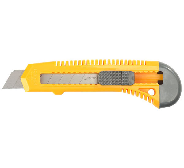 Нож Standard отличный режущий инструмент. Незаменим для использования в офисах, на складах, в быту. Прекрасно справляется с разрезанием картона, бумаги, ткани, кожи и других материалов. Лезвие ножа изготовлено из высококачественной стали. Качество этого материала и заточки лезвия обеспечивает легкий рез. Корпус ножа изготовлен из ударопрочного пластика и защитит его от случайных падений и повреждений. Материал лезвия: сталь. Длина лезвия: 18ммм. Материал корпуса: пластик.