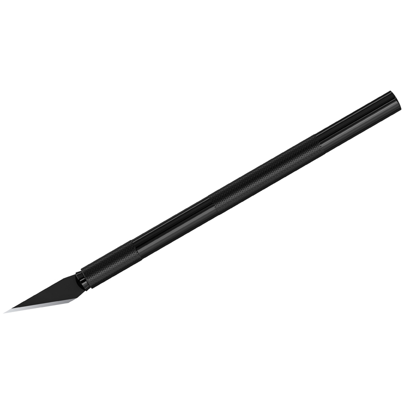 Нож-скальпель предназначен для работы по бумаге. Алюминиевый корпус имеет ребристость в зоне захвата, препятствуя скольжению пальцев. Нож-скальпель оснащен колпачком для безопасного хранения и транспортировки. В комплекте 5 запасных лезвий в пластиковом пенале.