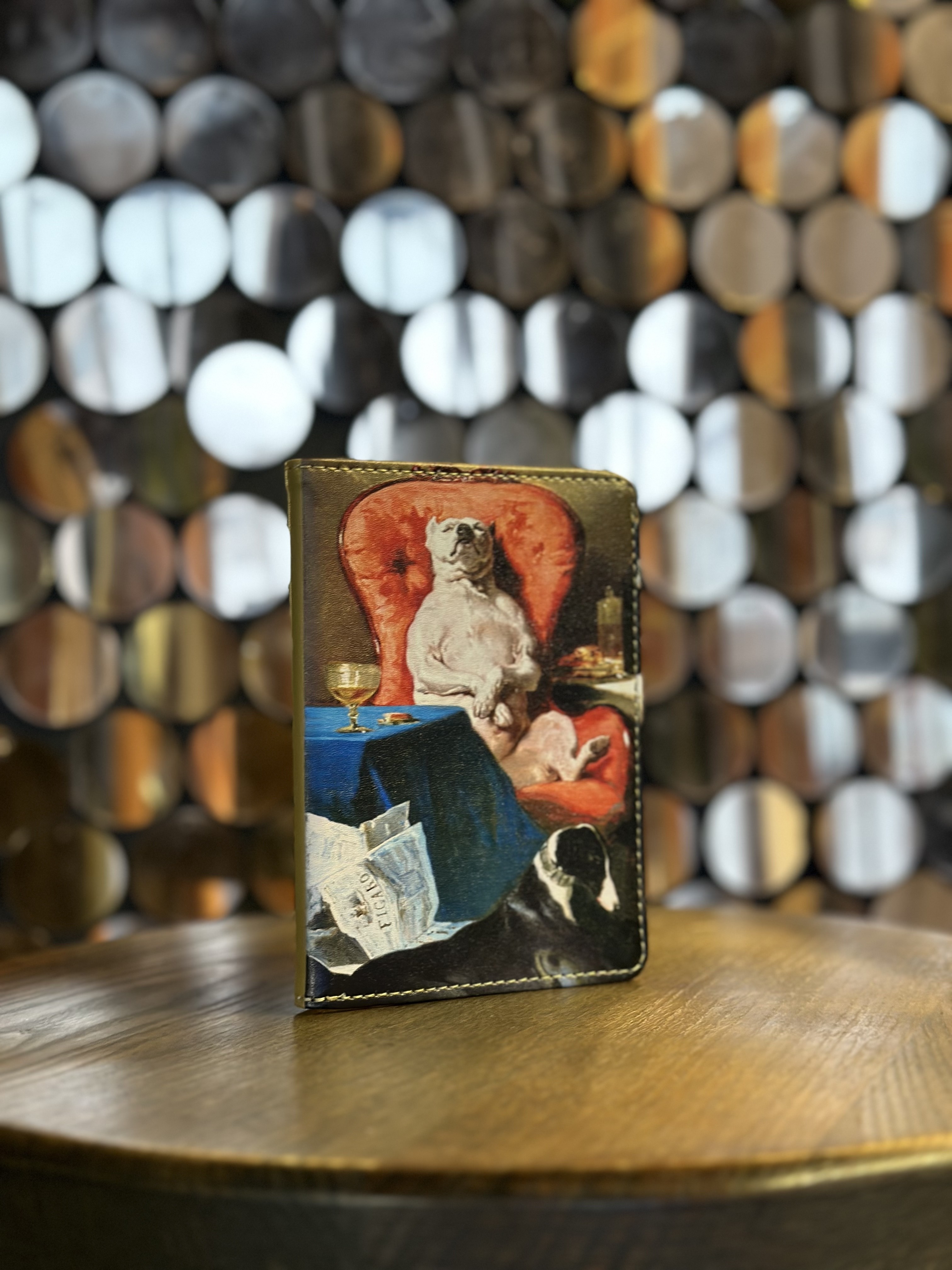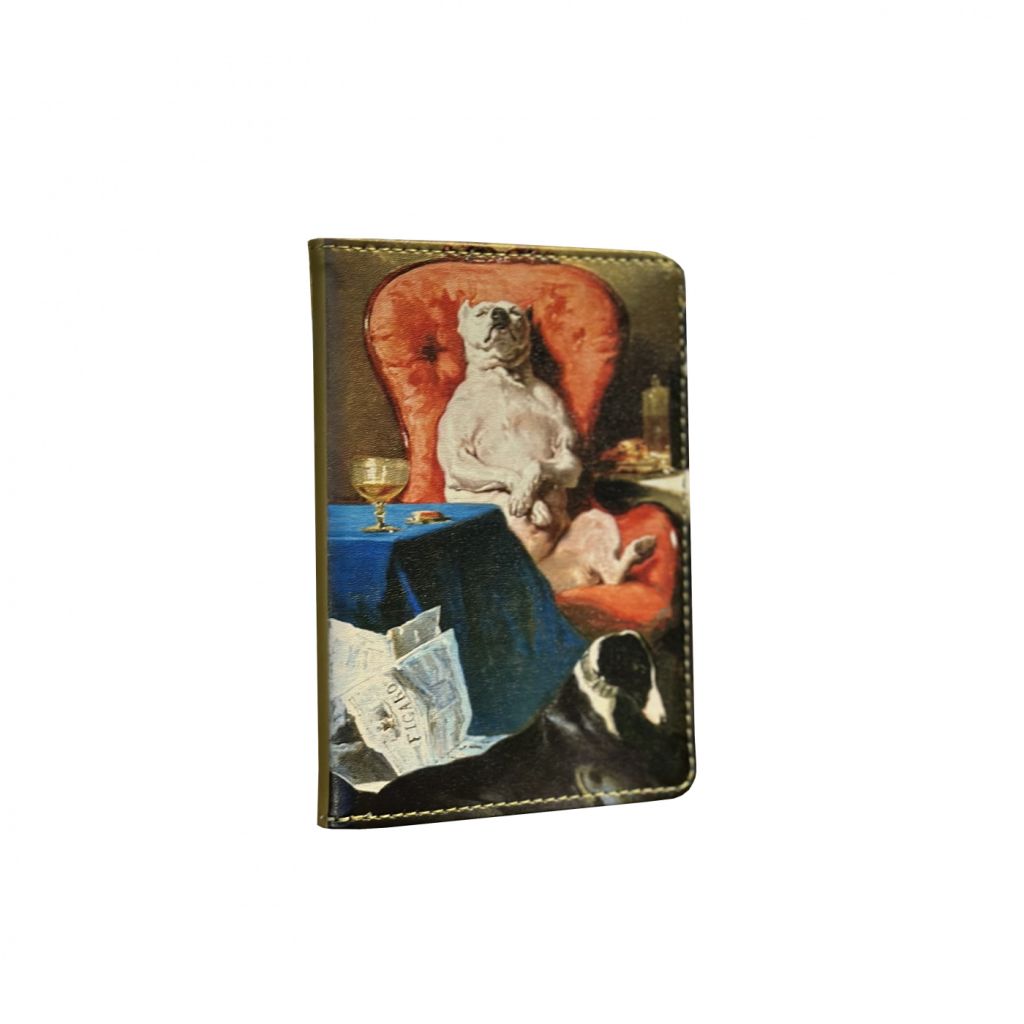 Удобная и практичная обложка для паспорта от из коллекции, посвященной Альфреду Дедрё. Лицевая сторона обложки украшена фрагментом картины «Мопс в кресле». Обложка выполнена из эко-кожи, внутри предусмотрен кармашек для пластиковой карты.