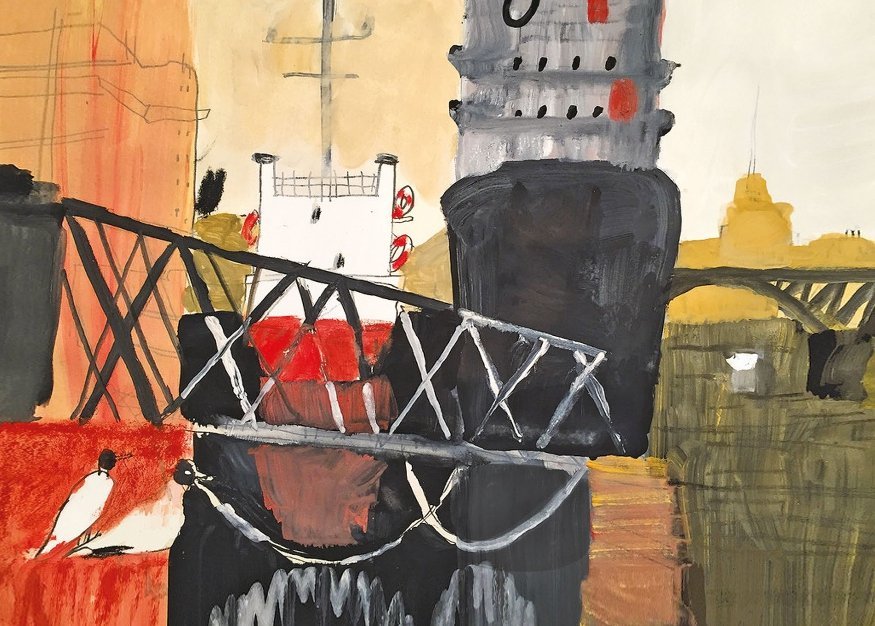 Открытка выполнена из плотного картона. На лицевой стороне иллюстрация Юлии Сидневой с достопримечательностями Санкт-Петербурга, на задней стороне место для марки и линовка для подписи.