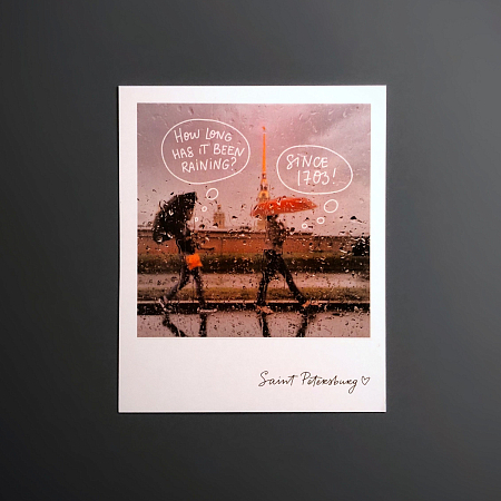 Открытка из серии «Полароид», напечатанная на качественном плотном картоне. На лицевой стороне открытки фото с настроением Санкт-Петербурга. На обратной стороне поле для марки и ваших самых тёплых пожеланий и слов.