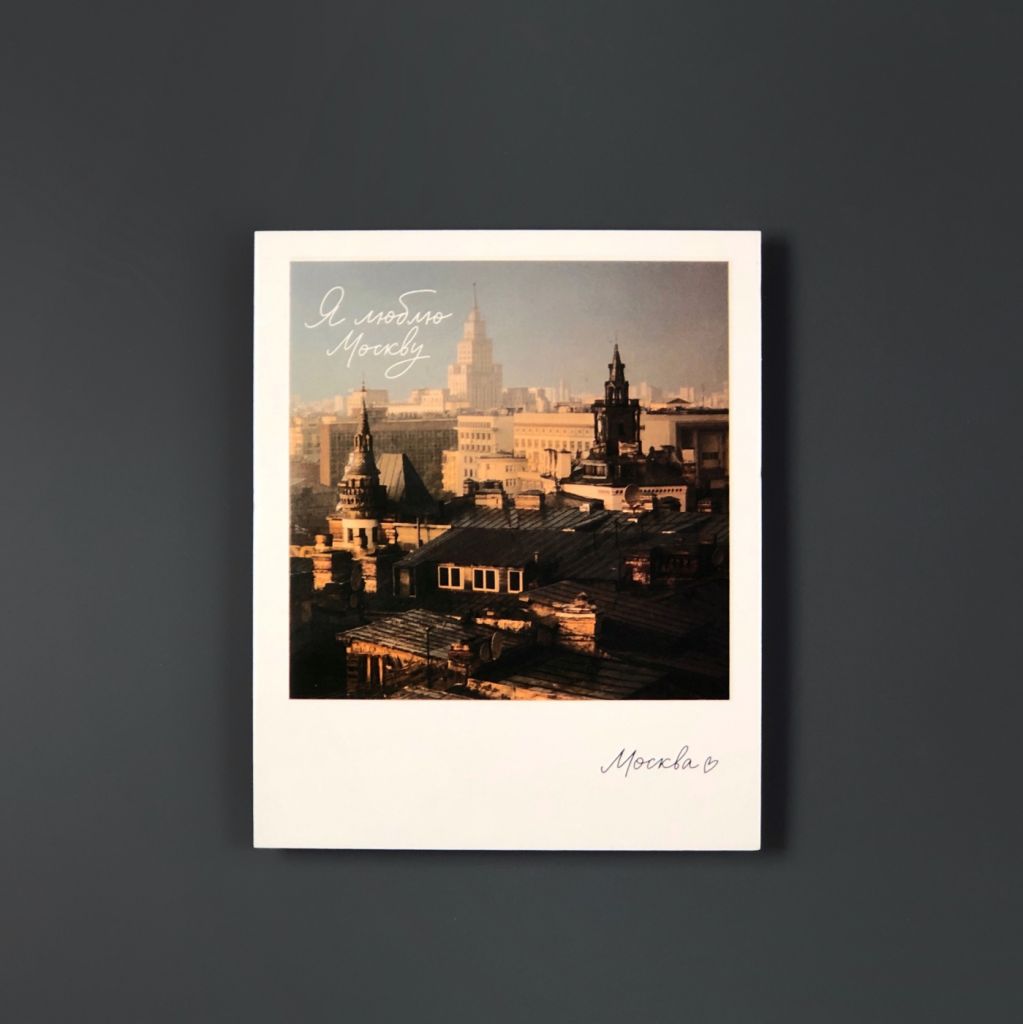 Открытка из серии «Полароид», напечатанная на качественном плотном картоне. На лицевой стороне открытки фото ярких достопримечательностей Москвы. На обратной стороне поле для марки и ваших самых тёплых пожеланий и слов.