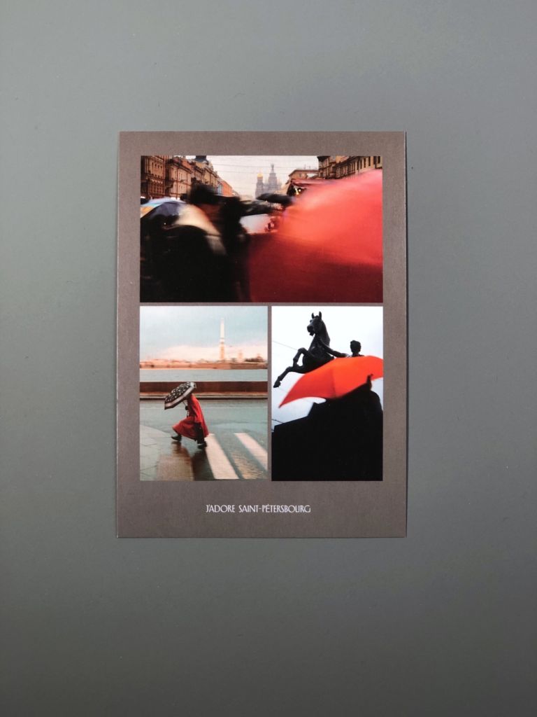 Открытка из плотного картона с коллажем из атмосферных фото Санкт Петербурга. На обратной стороне предусмотрены поля для марки, заполнения адреса получателя и ваших самых тёплых пожеланий и слов.