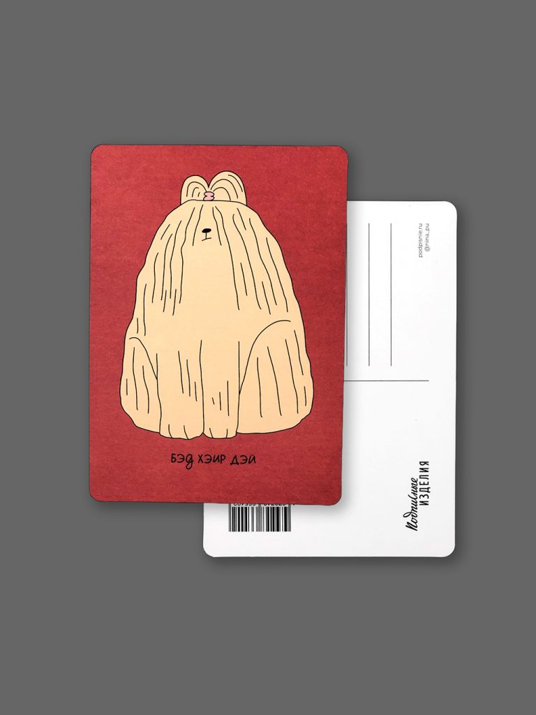 Открытка из плотного дизайнерского картона. На лицевой стороне открытки яркая авторская иллюстрация, на обратной стороне есть поле для марки, линовка для адреса и место для самых тёплых слов и пожеланий.