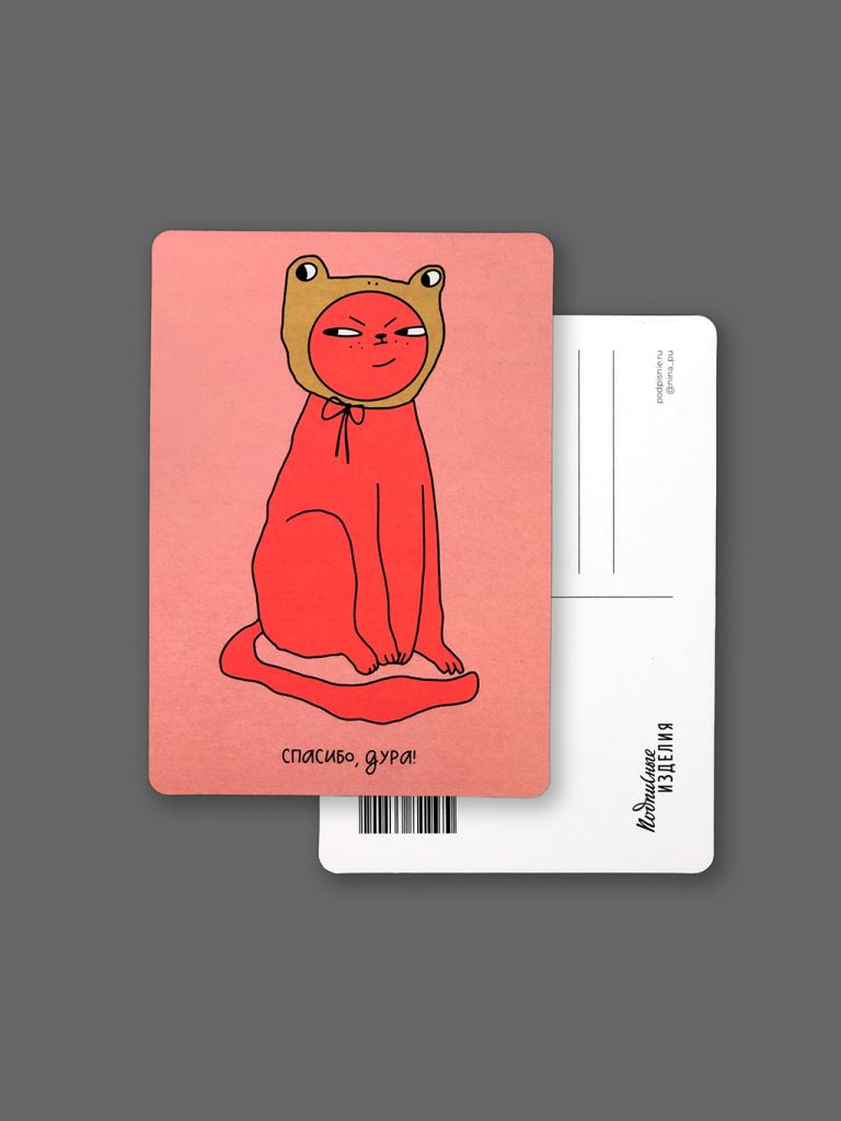 Открытка из плотного дизайнерского картона. На лицевой стороне открытки яркая авторская иллюстрация, на обратной стороне есть поле для марки, линовка для адреса и место для самых тёплых слов и пожеланий.