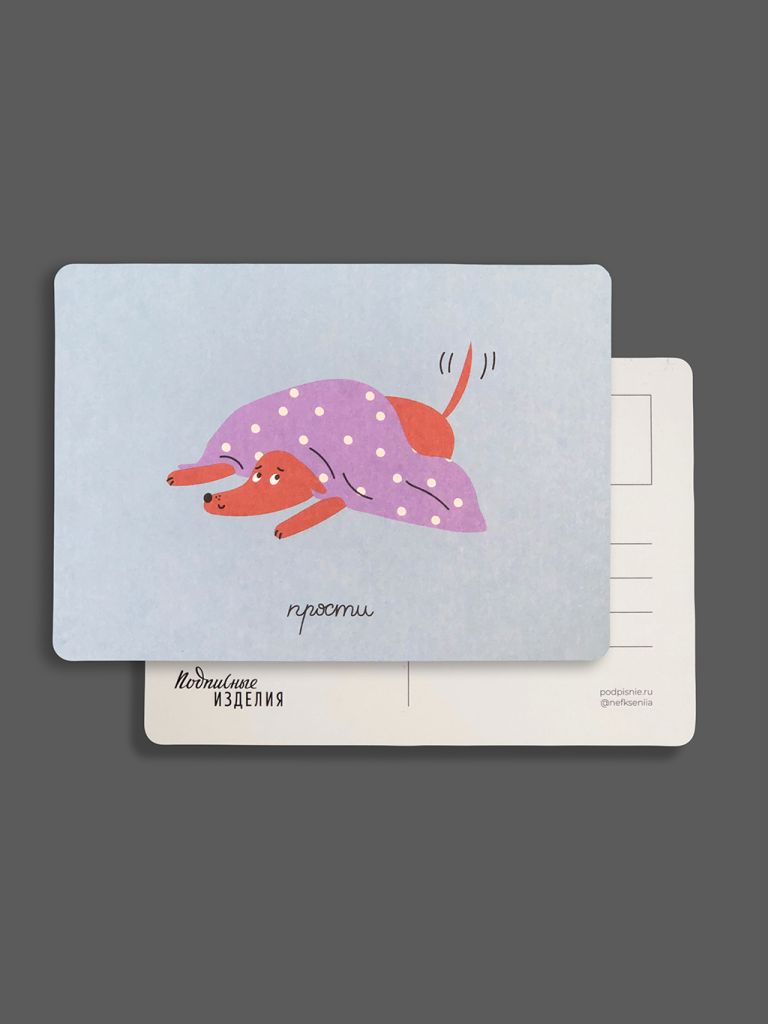 Открытка из плотного дизайнерского картона. На лицевой стороне открытки яркая авторская иллюстрация, на обратной стороне есть поле для марки, линовка для адреса и место для самых тёплых слов и пожеланий.