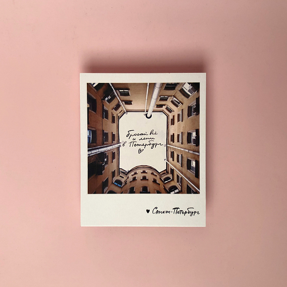 Открытка из серии «Полароид», напечатанная на качественном плотном картоне. На лицевой стороне открытки фото ярких достопримечательностей городов Санкт-Петербурга. На обратной стороне поле для марки и ваших самых тёплых пожеланий и слов.