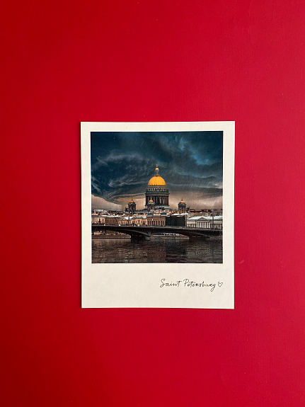 Открытка из серии «Полароид», напечатанная на качественном плотном картоне. На лицевой стороне открытки фото ярких достопримечательностей городов Санкт-Петербурга. На обратной стороне поле для марки и ваших самых тёплых пожеланий и слов.