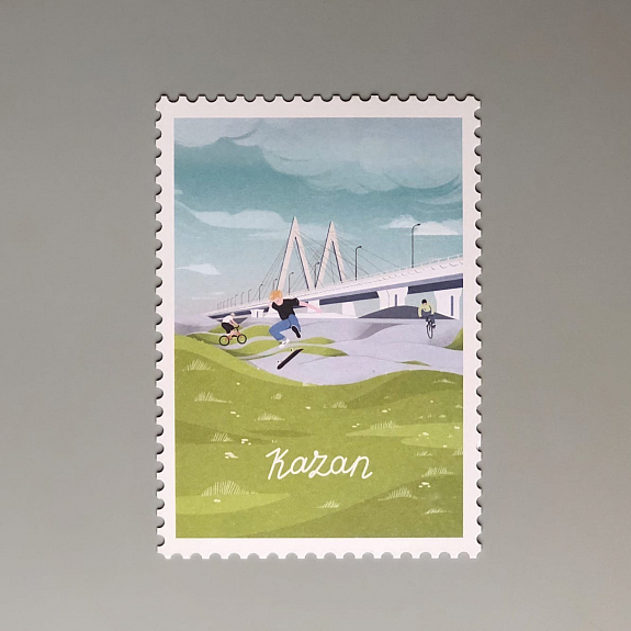 Оригинальная открытка с фигурными краями, стилизованная под марку, станет отличным дополнением к подарку и яркой основой для ваших самых тёплых пожеланий. Открытка выполнена из плотного картона. Лицевая сторона открытки украшена изображением достопримечательности города в ретро стиле, на обратной стороне разлиновка для текста, данных адресата и место под марку.
