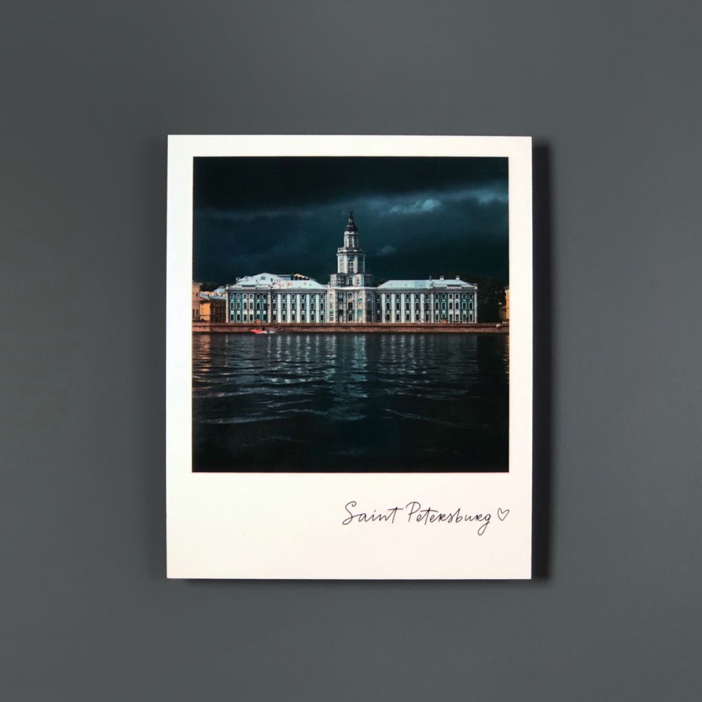 Открытка из серии «Полароид», напечатанная на качественном плотном картоне. На лицевой стороне открытки фото ярких достопримечательностей Санкт-Петербурга. На обратной стороне поле для марки и ваших самых тёплых пожеланий и слов.