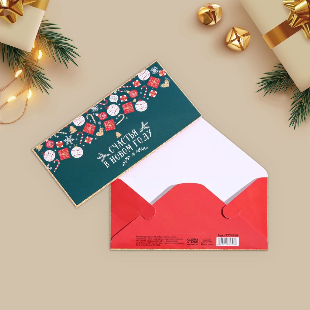Конверт для денег "Счастья в Новом году!", 16,5 х 8 см