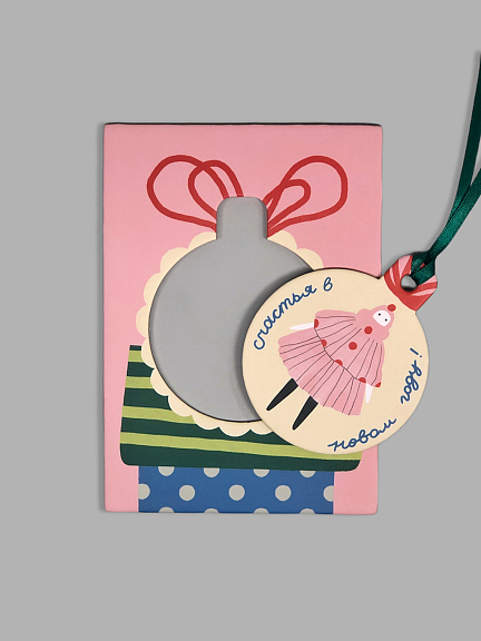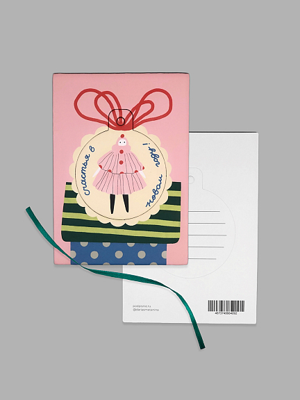 Открытка из плотного дизайнерского картона. На лицевой стороне открытки яркая авторская иллюстрация, на обратной стороне есть поле для марки, линовка для адреса и поле для самых тёплых слов и пожеланий. Фигурная вырубка позволяет сделать из открытки настоящее новогоднее украшение.