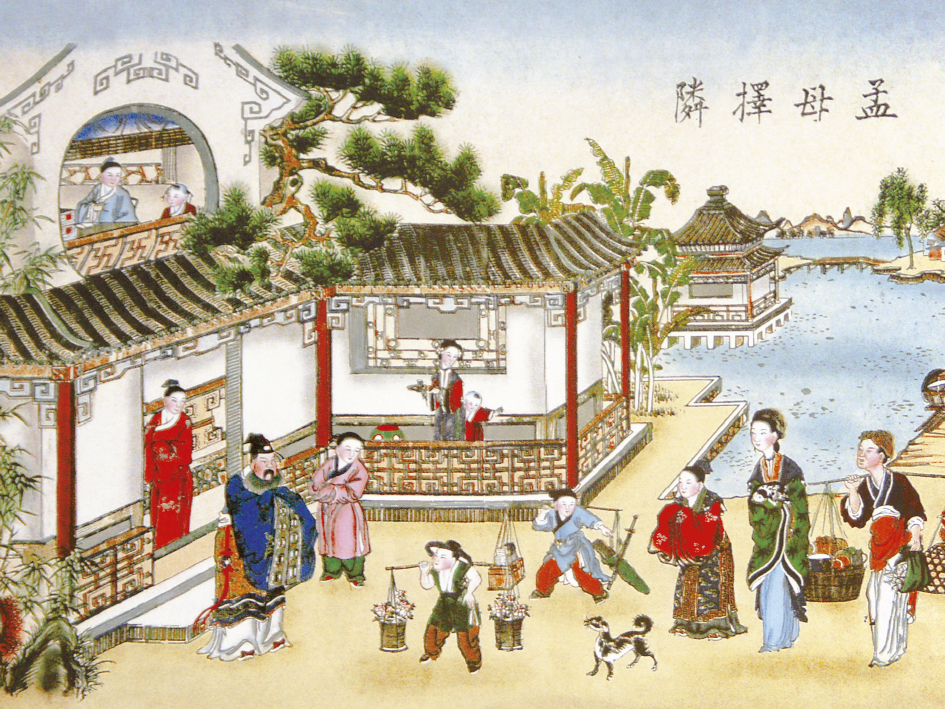 Открытка Новогодняя картинка. Мать Мэн-цзы выбирает соседей.