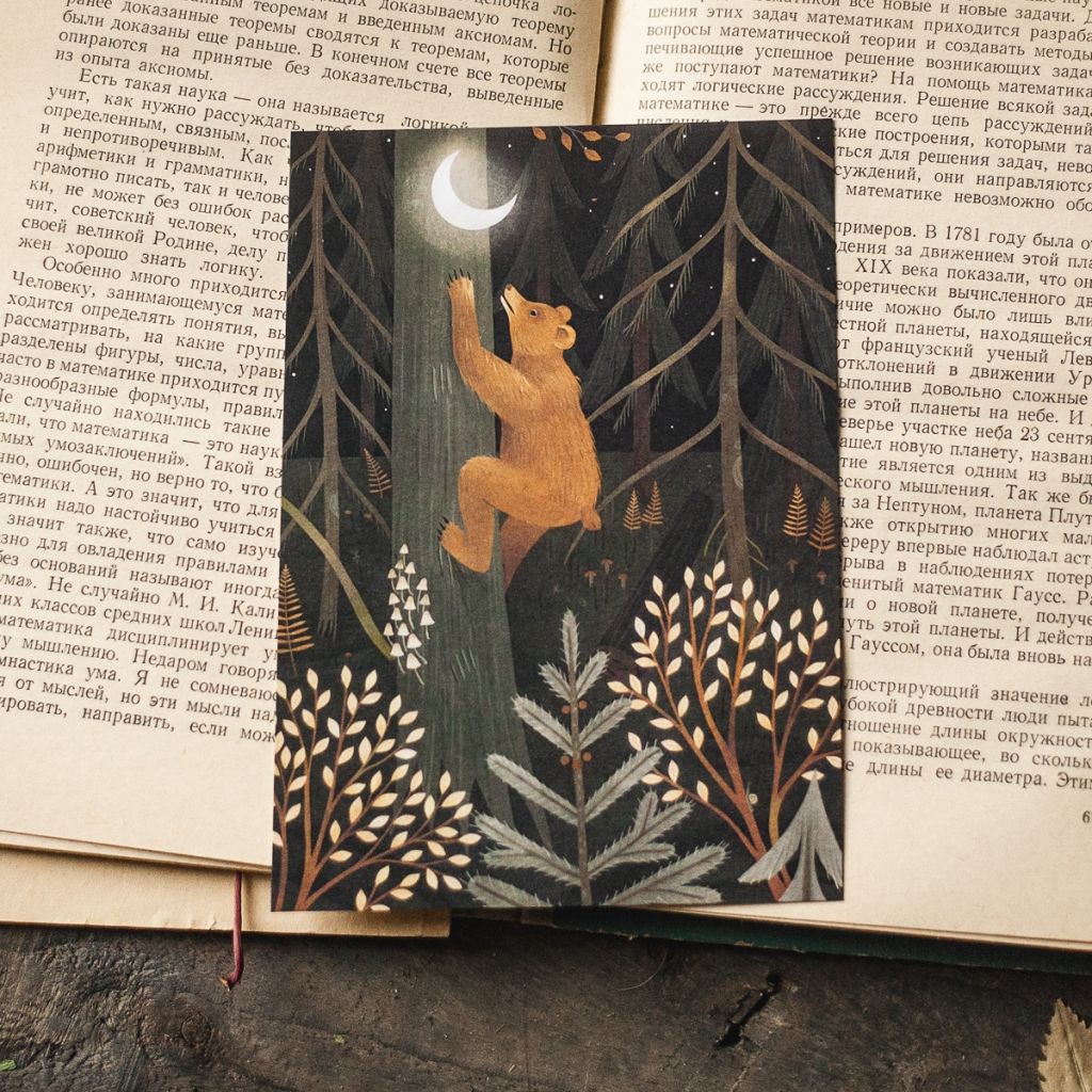 Авторские открытки с иллюстрациями талантливой художницы Александры Дворниковой созданы из плотной хлопковой бумаги, размер открытки стандартный 104х148 мм. На обратной стороне есть линовка для подписи, а также место под марку и адрес получателя. Иллюстрации Александры вдохновлены и наполнены бесконечной любовью к природе, очарованием леса и мистической красотой сказочных существ.