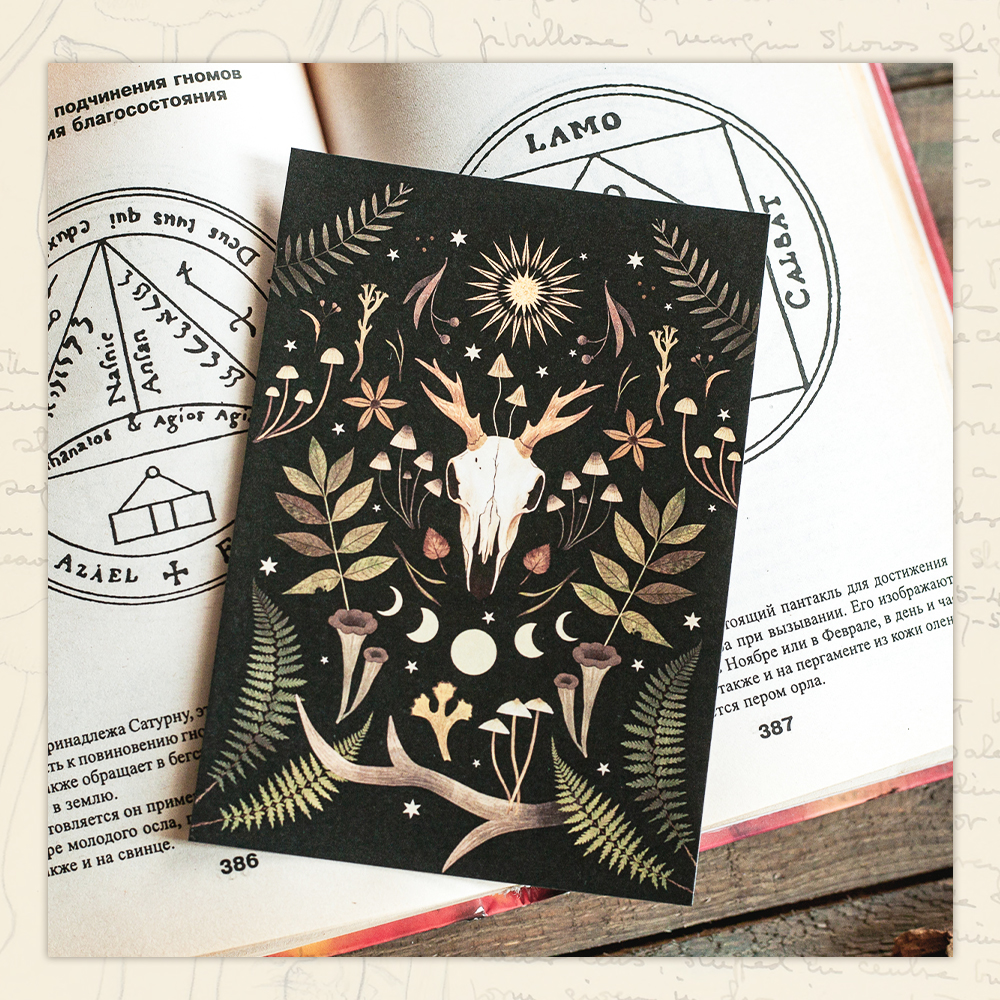 Авторские открытки с иллюстрациями талантливой художницы Александры Дворниковой созданы из плотной хлопковой бумаги, размер открытки стандартный 104х148 мм. На обратной стороне есть линовка для подписи, а также место под марку и адрес получателя. Иллюстрации Александры вдохновлены и наполнены бесконечной любовью к природе, очарованием леса и мистической красотой сказочных существ.