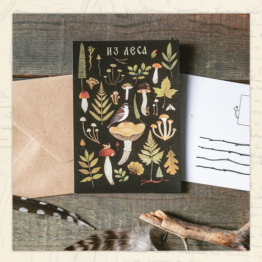 Авторские открытки с иллюстрациями талантливой художницы Александры Дворниковой созданы из плотной хлопковой бумаги, размер открытки стандартный 104х148 мм. На обратной стороне есть линовка для подписи, а также место под марку и адрес получателя. Иллюстрации Александры вдохновлены и наполнены бесконечной любовью к природе, очарованием леса и мистической красотой сказочных существ.