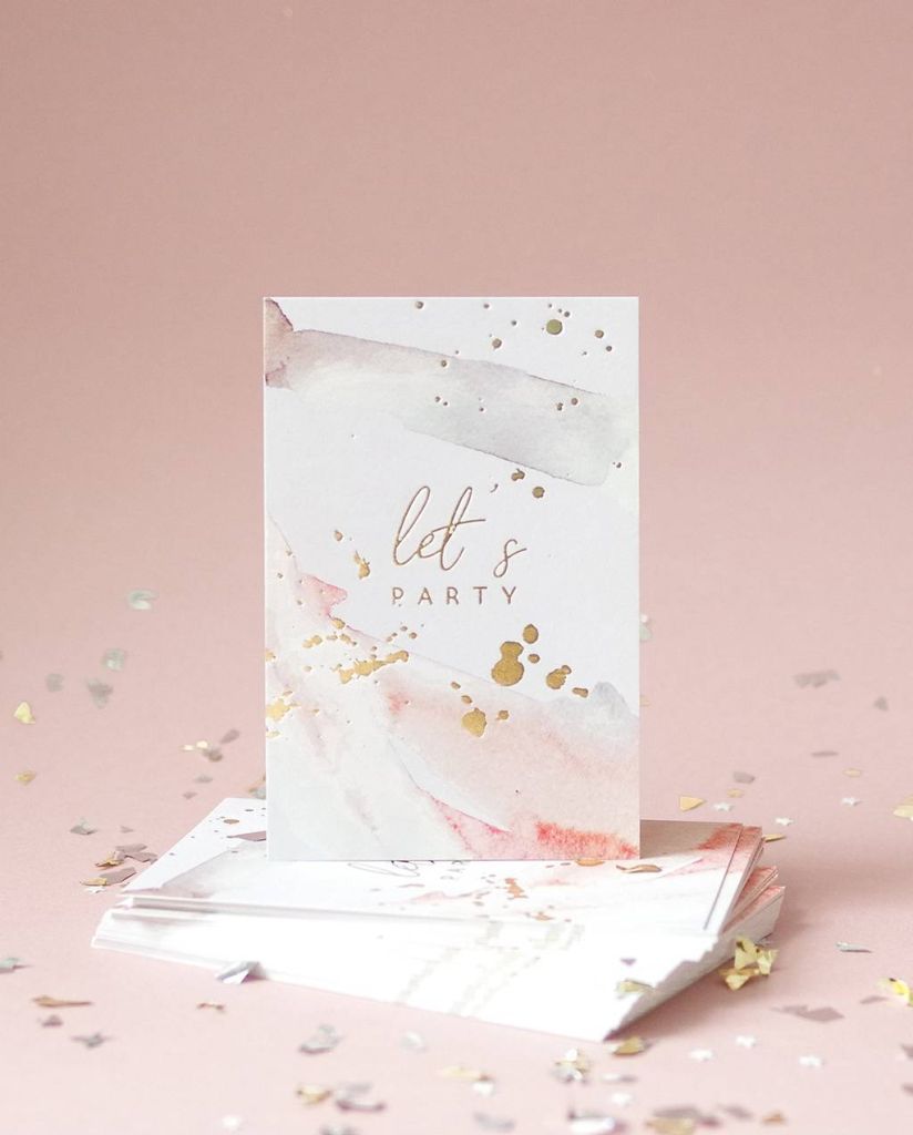 Let`s Party - и этим все сказано:) Стильная открытка оповестит о предстоящем празднике в любой ситуации - день рождения, классная вечеринка, девичник или любая грядущая тусовка. А тиснение золотой фольгой заранее говорит о том, что праздник будет блестящим!