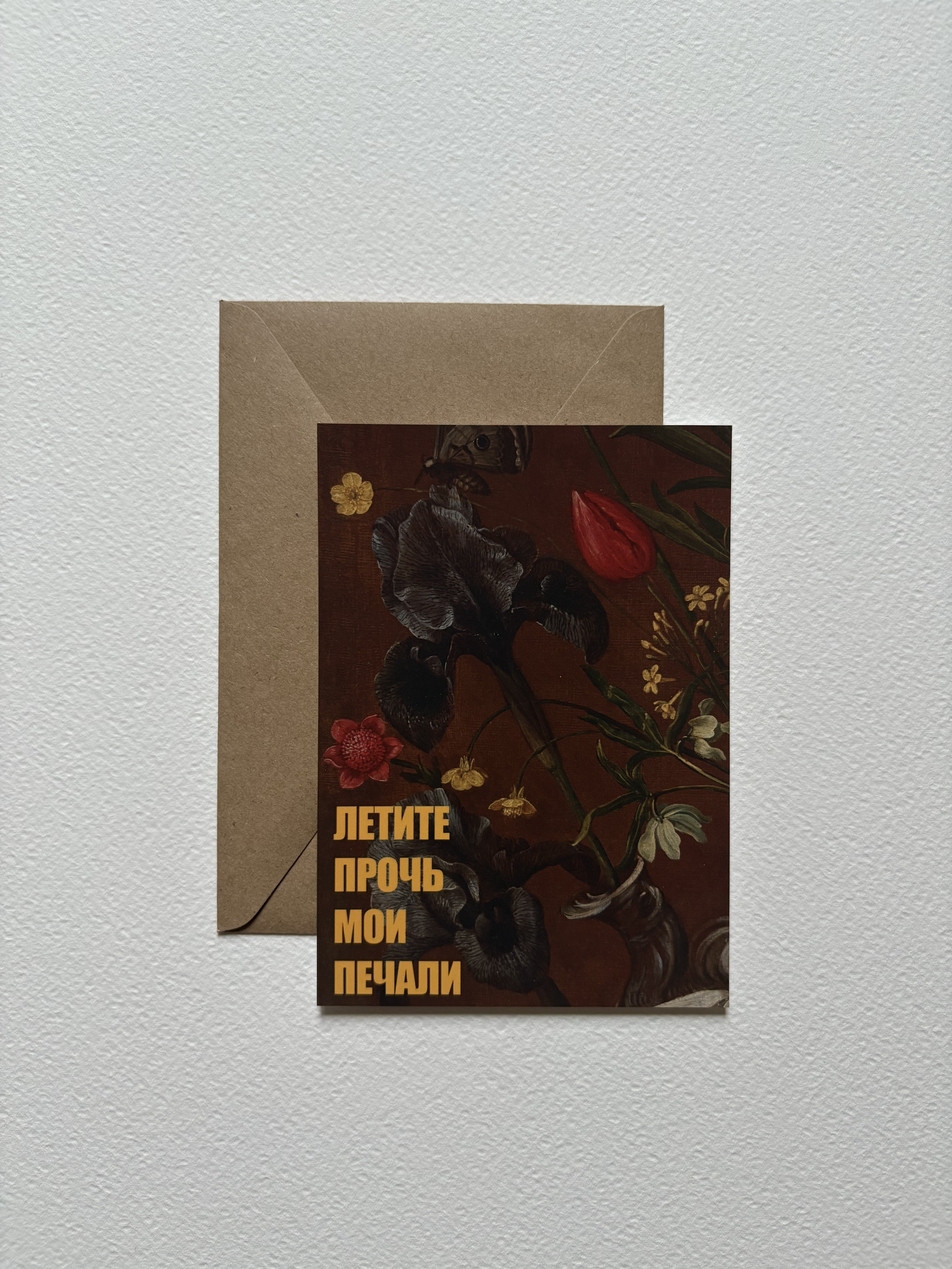 Открытки бренда отличаются качественной, приятной на ощупь шелковой ламинацией. Она помогает изделию надолго сохранить свой внешний вид и придает эстетичный матовый финиш. С обратной стороны предусмотрено место для памятной даты, подписи и имени отправителя. В комплекте также есть крафтовый конвертик Радуйте любимых каждый день и пусть искусство всегда будет с вами.
