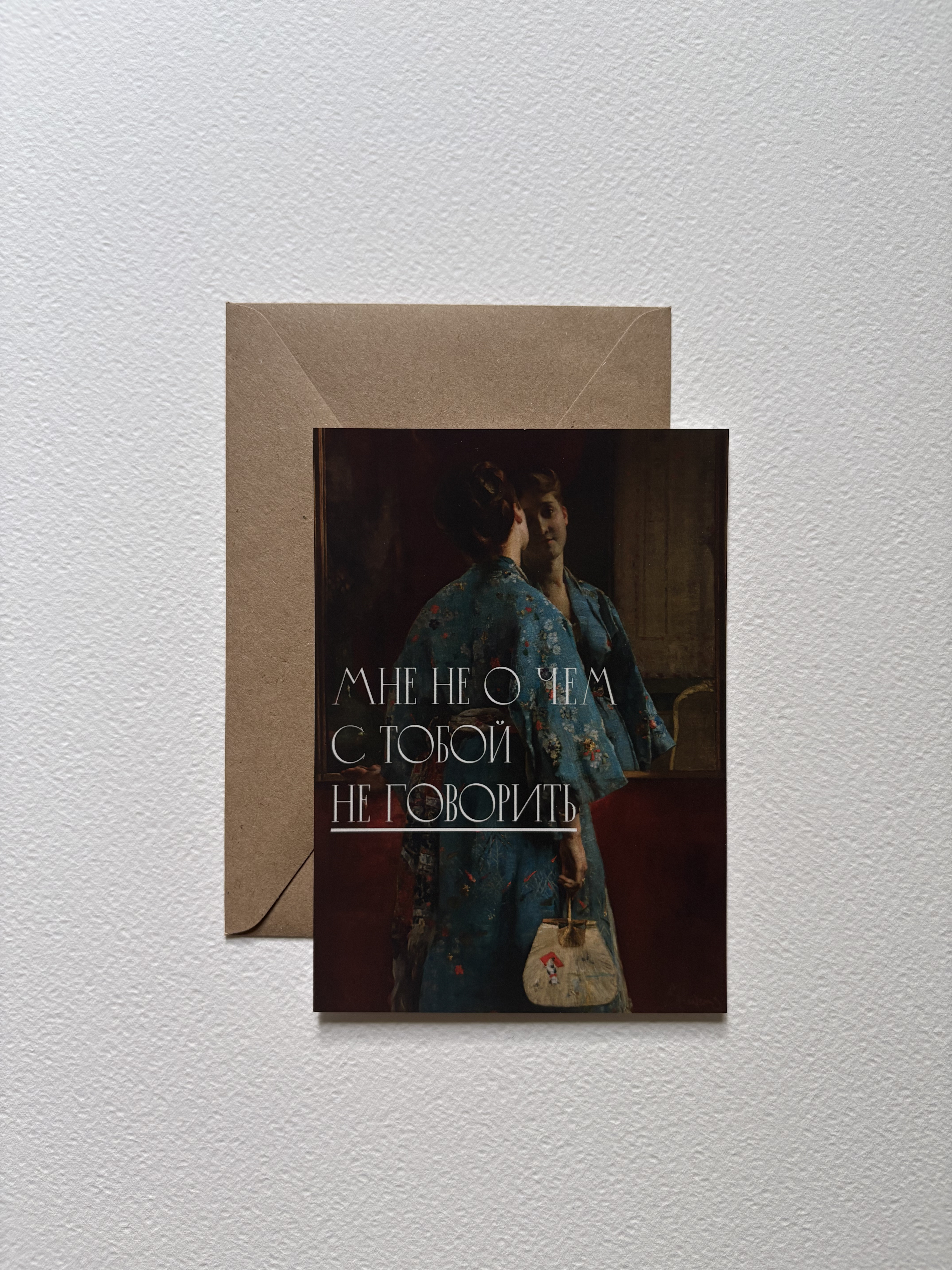 Открытки бренда отличаются качественной, приятной на ощупь шелковой ламинацией. Она помогает изделию надолго сохранить свой внешний вид и придает эстетичный матовый финиш. С обратной стороны предусмотрено место для памятной даты, подписи и имени отправителя. В комплекте также есть крафтовый конвертик Радуйте любимых каждый день и пусть искусство всегда будет с вами.