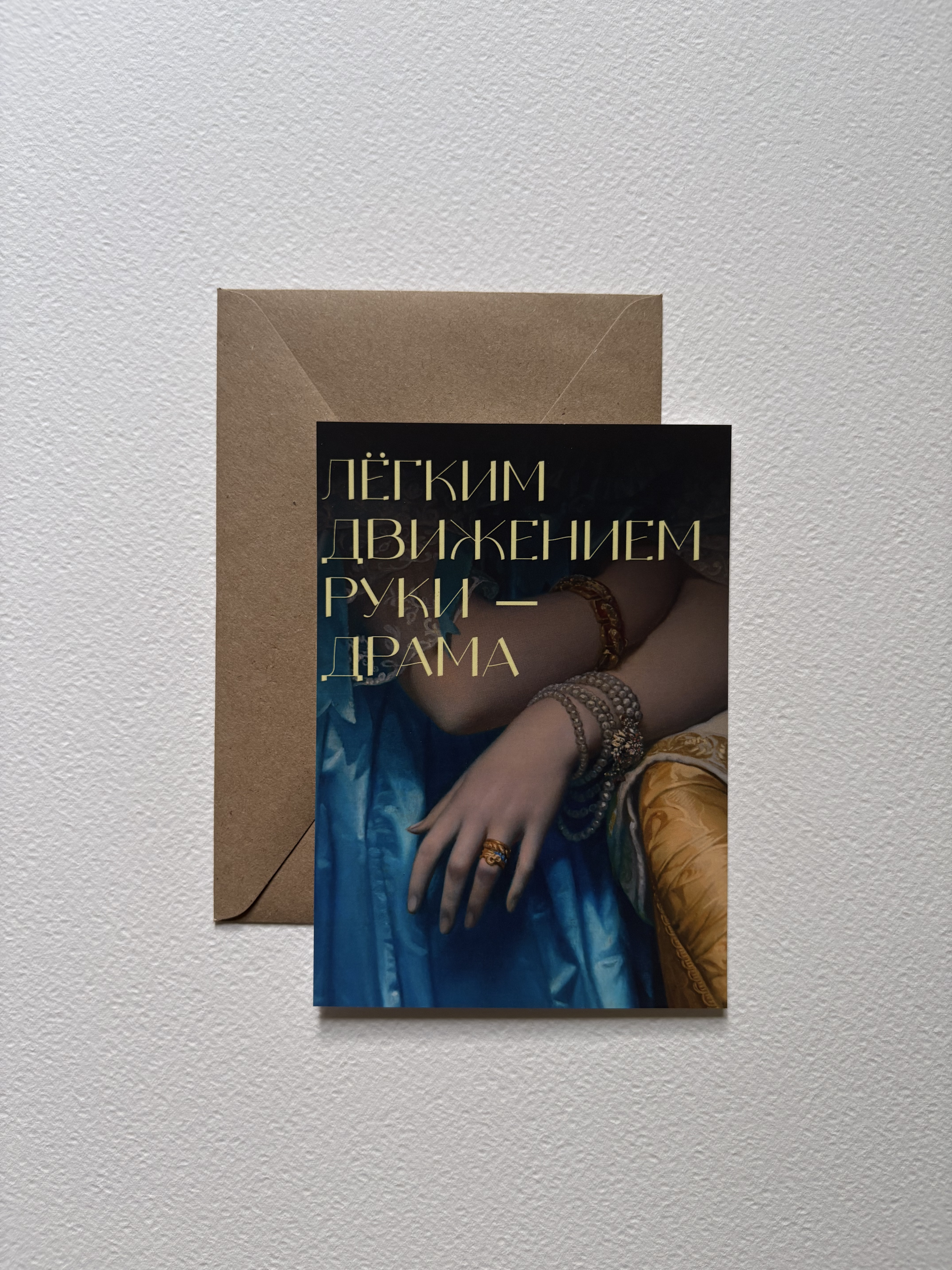 Открытки бренда отличаются качественной, приятной на ощупь шелковой ламинацией. Она помогает изделию надолго сохранить свой внешний вид и придает эстетичный матовый финиш. С обратной стороны предусмотрено место для памятной даты, подписи и имени отправителя. В комплекте также есть крафтовый конвертик Радуйте любимых каждый день и пусть искусство всегда будет с вами.