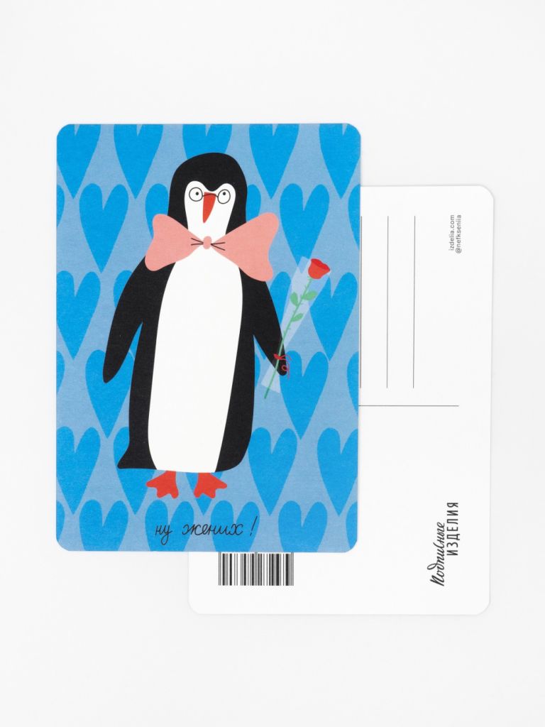 Открытка из плотного дизайнерского картона. На лицевой стороне открытки яркая авторская иллюстрация, на обратной стороне есть поле для марки, линовка для адреса и поле для самых тёплых слов и пожеланий.