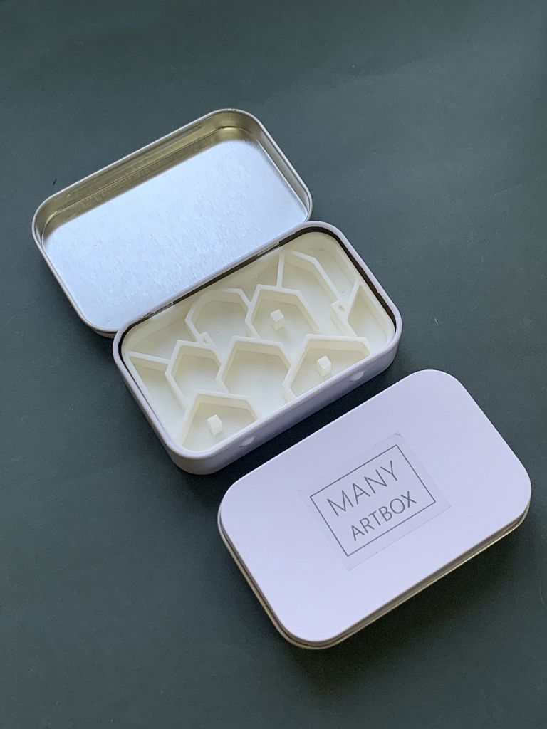 Очаровательные компактные палетки в оригинальном дизайне — это настоящая находка для тех, кто ищет подарок художнику или сам увлекается акварельной живописью. Палетка представляет собой небольшую металлическую коробку с крышкой, размер в закрытом виде составляет всего 9х6 см. Внутри коробочки находится разделитель для красок различного цвета, созданный в необычном формате — в зависимости от модели это могут быть горы, домики и прочее. Палетки поставляются без красок, вы можете самостоятельно наполнить их любимой цветовой гаммой получателя, спрятать в них небольшой сюрприз или оставить как есть. Идеальный аксессуар для пленэров и зарисовок в путешествиях!