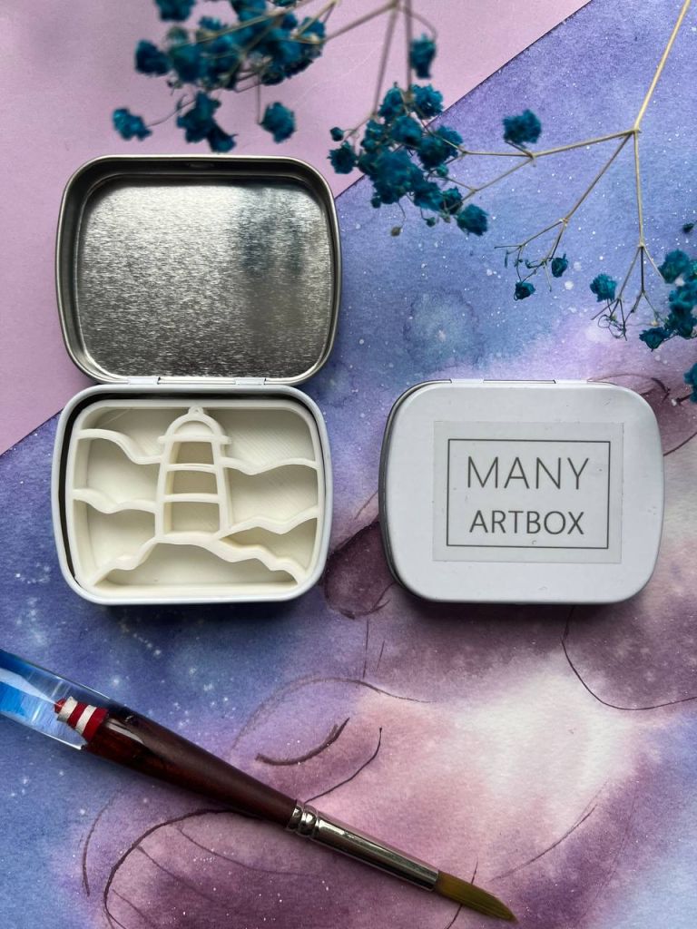 Очаровательные компактные палетки в оригинальном дизайне — это настоящая находка для тех, кто ищет подарок художнику или сам увлекается акварельной живописью. Палетка представляет собой небольшую металлическую коробку с крышкой. Внутри коробочки находится разделитель для красок различного цвета, созданный в необычном формате — в зависимости от модели это могут быть горы, домики и прочее. Палетки поставляются без красок, вы можете самостоятельно наполнить их любимой цветовой гаммой получателя, спрятать в них небольшой сюрприз или оставить как есть. Идеальный аксессуар для пленэров и зарисовок в путешествиях!