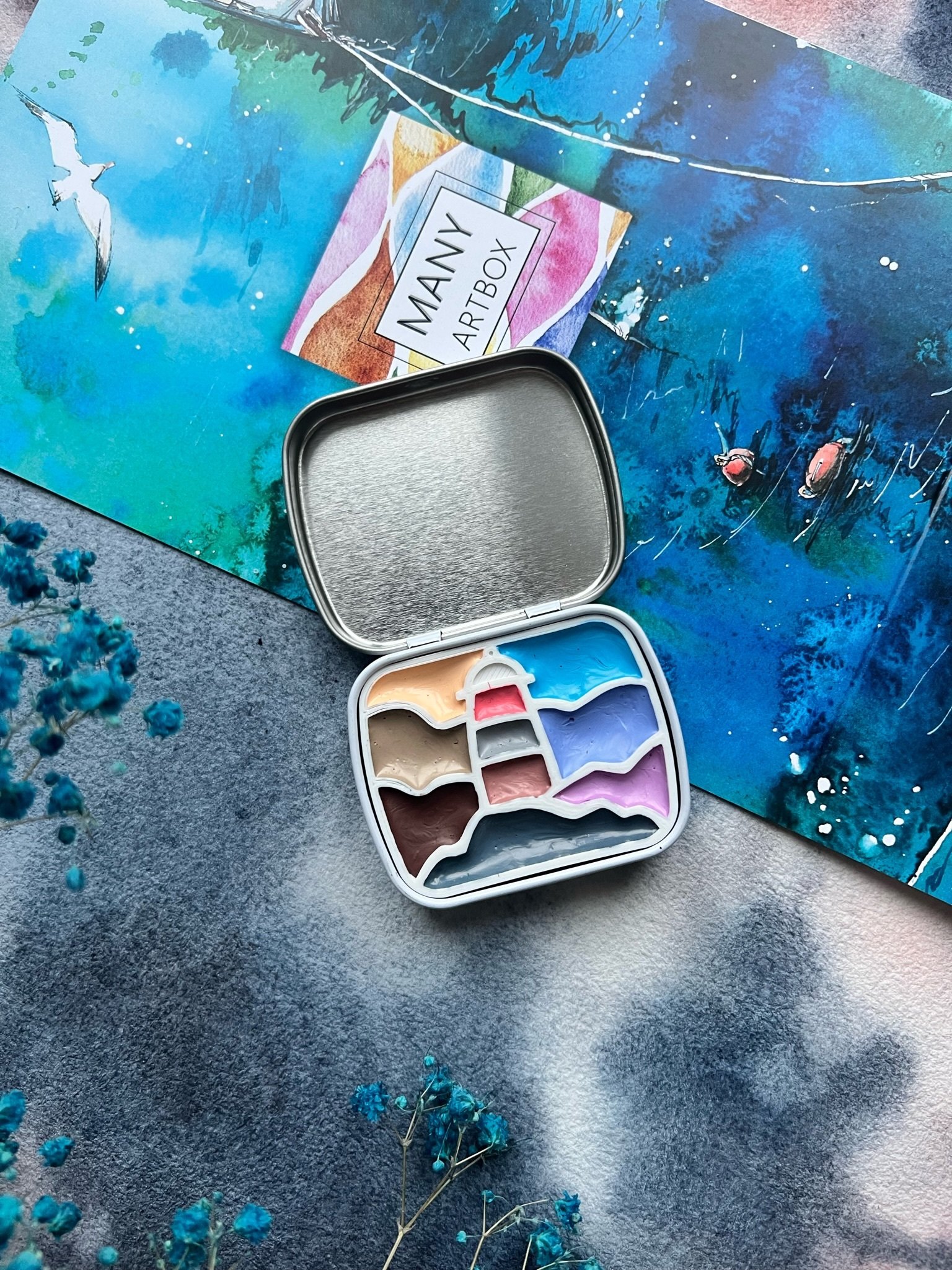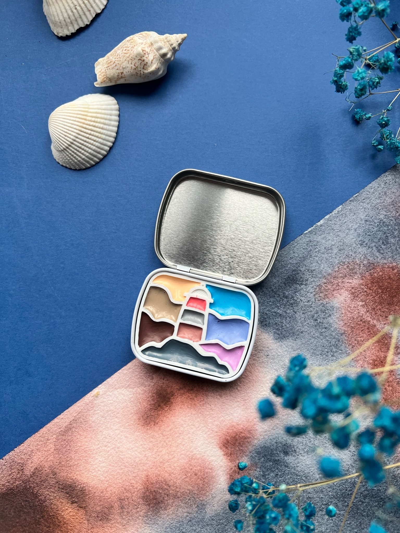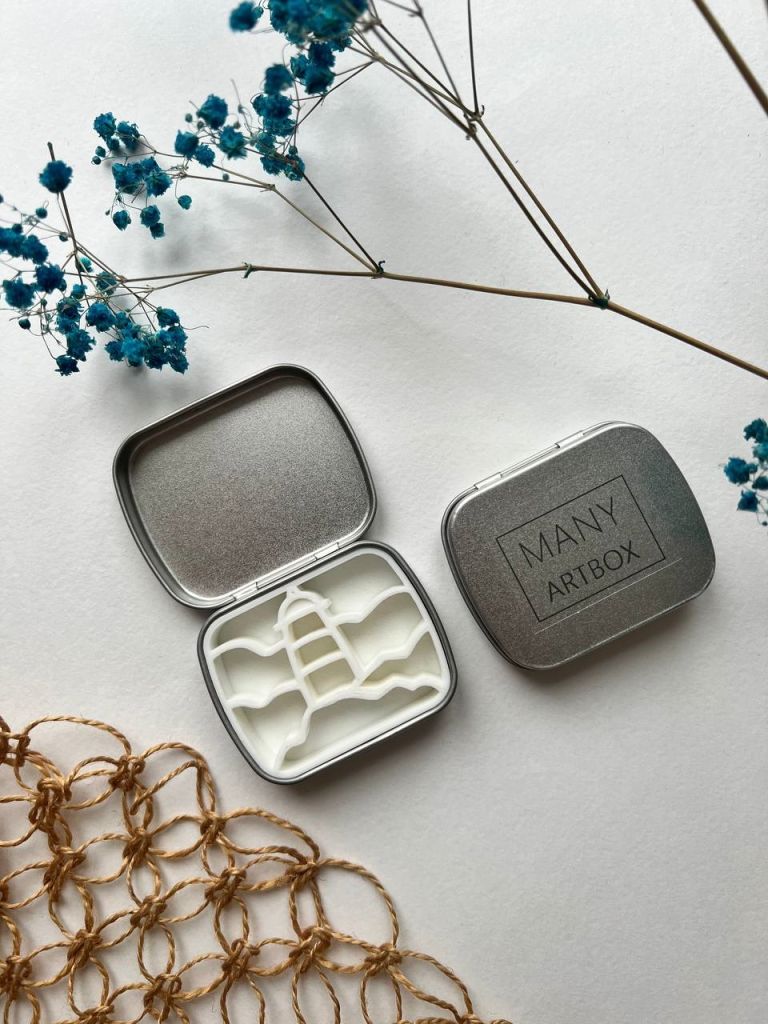Очаровательные компактные палетки в оригинальном дизайне — это настоящая находка для тех, кто ищет подарок художнику или сам увлекается акварельной живописью. Палетка представляет собой небольшую металлическую коробку с крышкой, размер в закрытом виде составляет всего 6х5 см. Внутри коробочки находится разделитель для красок различного цвета, созданный в необычном формате — в зависимости от модели это могут быть горы, домики и прочее. Палетки поставляются без красок, вы можете самостоятельно наполнить их любимой цветовой гаммой получателя, спрятать в них небольшой сюрприз или оставить как есть. Идеальный аксессуар для пленэров и зарисовок в путешествиях!