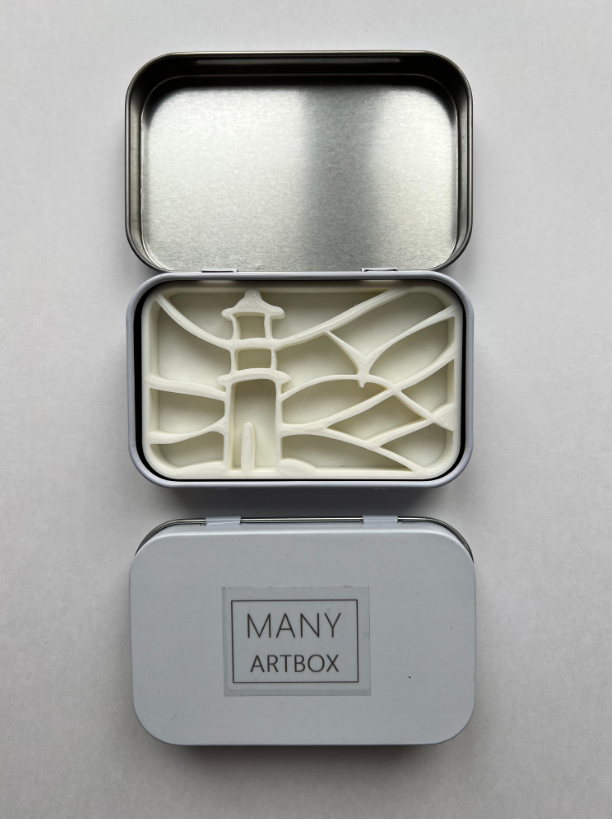Очаровательные компактные палетки в оригинальном дизайне — это настоящая находка для тех, кто ищет подарок художнику или сам увлекается акварельной живописью. Палетка представляет собой небольшую металлическую коробку с крышкой, размер в закрытом виде составляет всего 9х6 см. Внутри коробочки находится разделитель для красок различного цвета, созданный в необычном формате — в зависимости от модели это могут быть горы, домики и прочее. Палетки поставляются без красок, вы можете самостоятельно наполнить их любимой цветовой гаммой получателя, спрятать в них небольшой сюрприз или оставить как есть. Идеальный аксессуар для пленэров и зарисовок в путешествиях!
