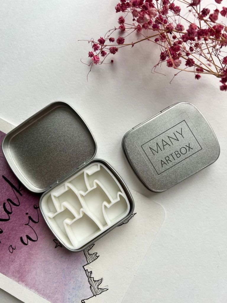 Очаровательные компактные палетки в оригинальном дизайне — это настоящая находка для тех, кто ищет подарок художнику или сам увлекается акварельной живописью. Палетка представляет собой небольшую металлическую коробку с крышкой. Внутри коробочки находится разделитель для красок различного цвета, созданный в необычном формате — в зависимости от модели это могут быть горы, домики и прочее. Палетки поставляются без красок, вы можете самостоятельно наполнить их любимой цветовой гаммой получателя, спрятать в них небольшой сюрприз или оставить как есть. Идеальный аксессуар для пленэров и зарисовок в путешествиях!