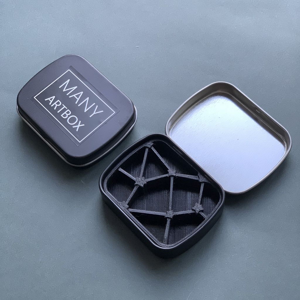 Очаровательные компактные палетки в оригинальном дизайне — это настоящая находка для тех, кто ищет подарок художнику или сам увлекается акварельной живописью. Палетка представляет собой небольшую металлическую коробку с крышкой, размер в закрытом виде составляет всего 6х5 см. Внутри коробочки находится разделитель для красок различного цвета, созданный в необычном формате — в зависимости от модели это могут быть горы, домики и прочее. Палетки поставляются без красок, вы можете самостоятельно наполнить их любимой цветовой гаммой получателя, спрятать в них небольшой сюрприз или оставить как есть. Идеальный аксессуар для пленэров и зарисовок в путешествиях!