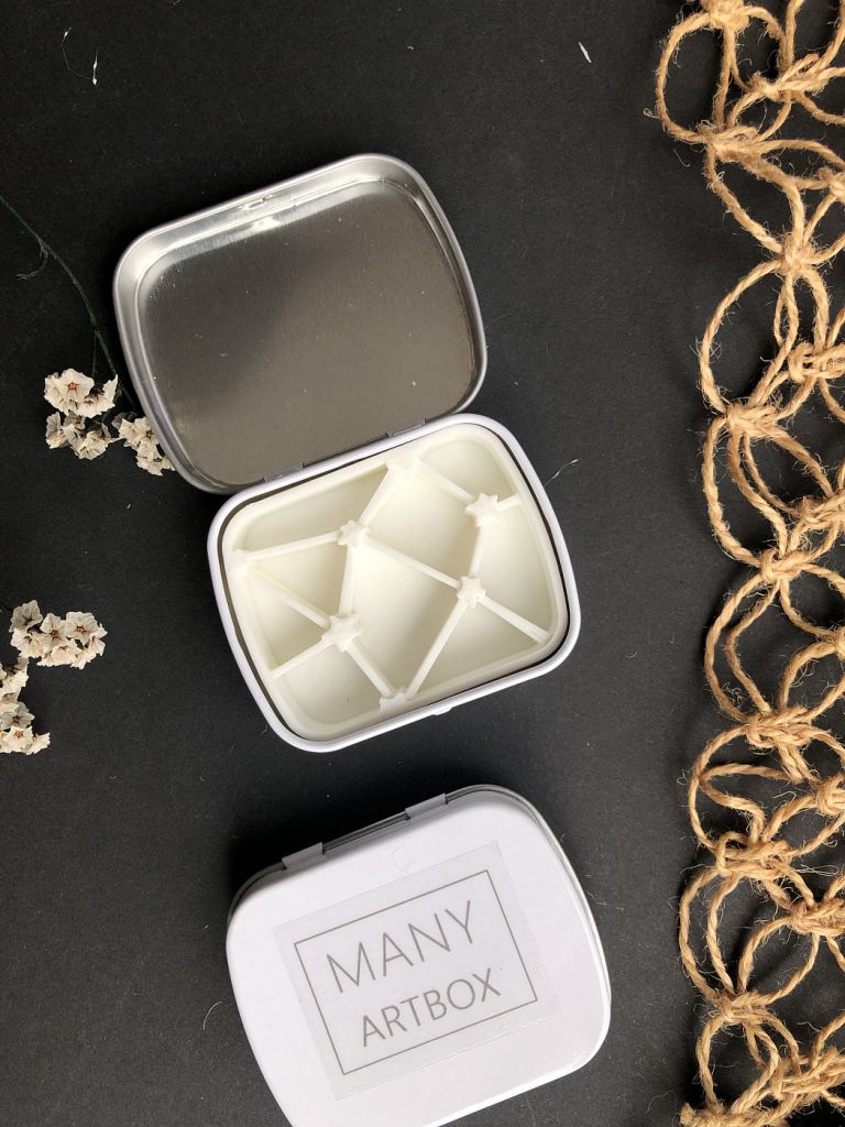 Очаровательные компактные палетки в оригинальном дизайне — это настоящая находка для тех, кто ищет подарок художнику или сам увлекается акварельной живописью. Палетка представляет собой небольшую металлическую коробку с крышкой, размер в закрытом виде составляет всего 6х5 см. Внутри коробочки находится разделитель для красок различного цвета, созданный в необычном формате — в зависимости от модели это могут быть горы, домики и прочее. Палетки поставляются без красок, вы можете самостоятельно наполнить их любимой цветовой гаммой получателя, спрятать в них небольшой сюрприз или оставить как есть. Идеальный аксессуар для пленэров и зарисовок в путешествиях!