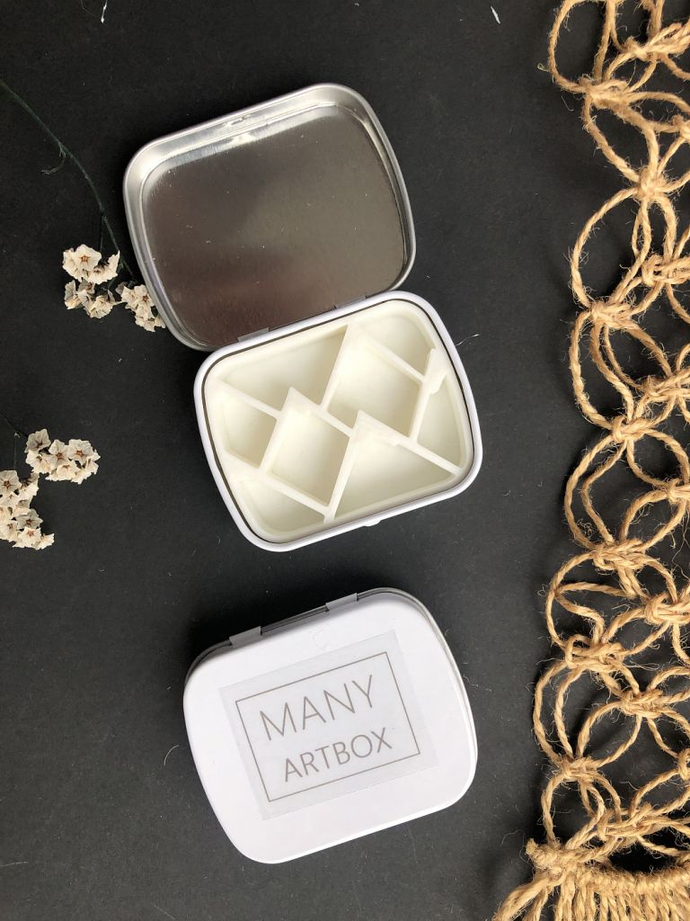 Очаровательные компактные палетки в оригинальном дизайне — это настоящая находка для тех, кто ищет подарок художнику или сам увлекается акварельной живописью. Палетка представляет собой небольшую металлическую коробку с крышкой, размер в закрытом виде составляет всего 6х5 см. Внутри коробочки находится разделитель для красок различного цвета, созданный в необычном формате — в зависимости от модели это могут быть горы, домики и прочее. Палетки поставляются без красок, вы можете самостоятельно наполнить их любимой цветовой гаммой получателя, спрятать в них небольшой сюрприз или оставить как есть. Идеальный аксессуар для пленэров и зарисовок в путешествиях!