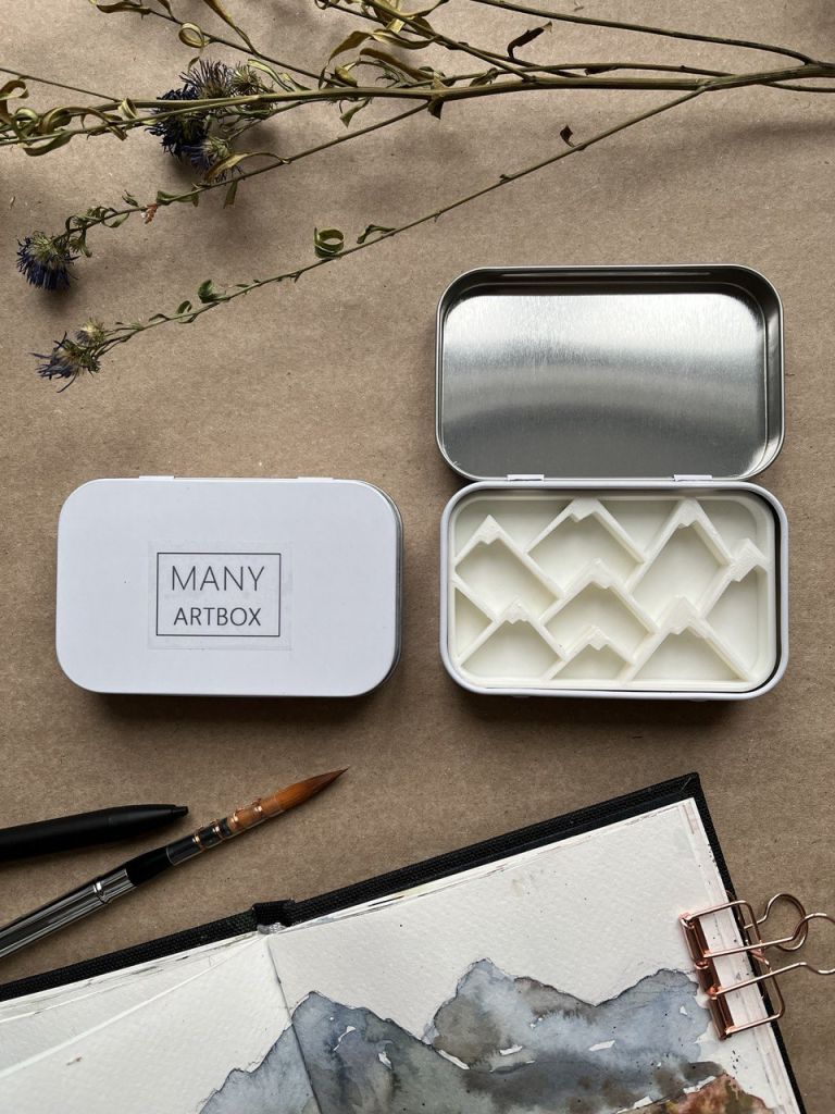 Очаровательные компактные палетки в оригинальном дизайне — это настоящая находка для тех, кто ищет подарок художнику или сам увлекается акварельной живописью. Палетка представляет собой небольшую металлическую коробку с крышкой. Внутри коробочки находится разделитель для красок различного цвета, созданный в необычном формате — в зависимости от модели это могут быть горы, домики и прочее. Палетки поставляются без красок, вы можете самостоятельно наполнить их любимой цветовой гаммой получателя, спрятать в них небольшой сюрприз или оставить как есть. Идеальный аксессуар для пленэров и зарисовок в путешествиях!