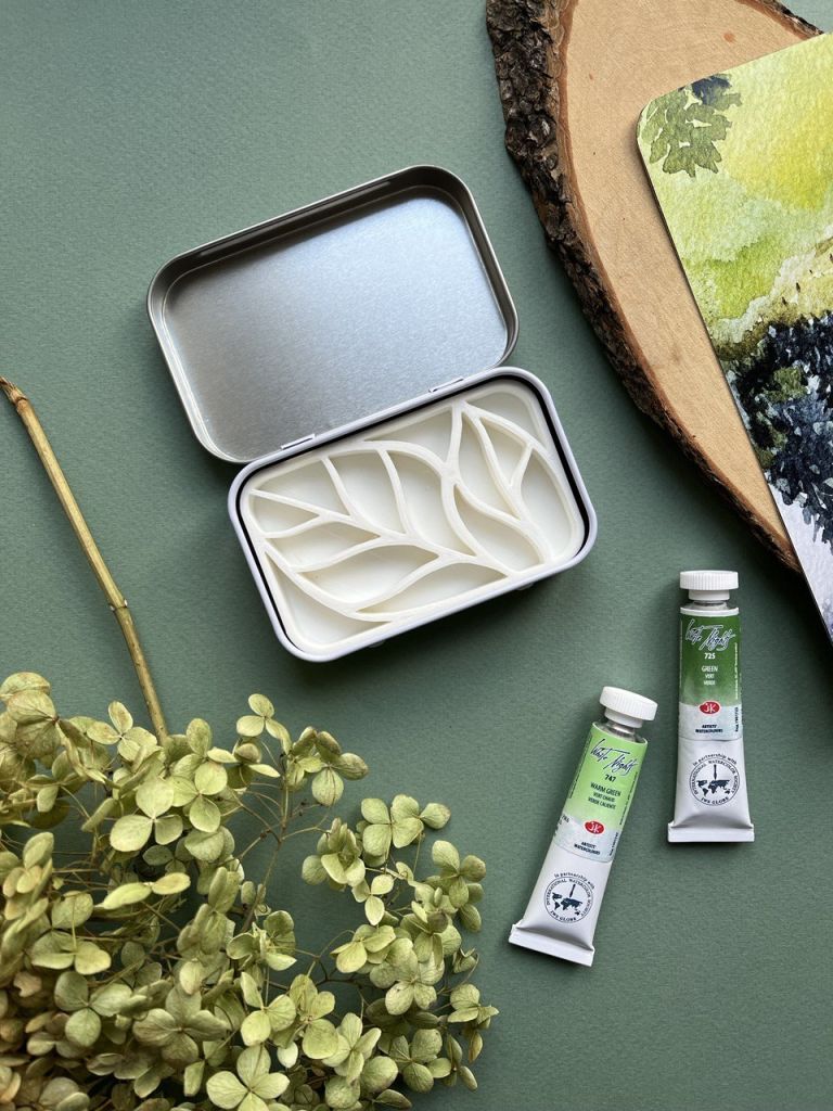 Очаровательные компактные палетки в оригинальном дизайне — это настоящая находка для тех, кто ищет подарок художнику или сам увлекается акварельной живописью. Палетка представляет собой небольшую металлическую коробку с крышкой, размер в закрытом виде составляет всего 9х6 см. Внутри коробочки находится разделитель для красок различного цвета, созданный в необычном формате — в зависимости от модели это могут быть горы, домики и прочее. Палетки поставляются без красок, вы можете самостоятельно наполнить их любимой цветовой гаммой получателя, спрятать в них небольшой сюрприз или оставить как есть. Идеальный аксессуар для пленэров и зарисовок в путешествиях!