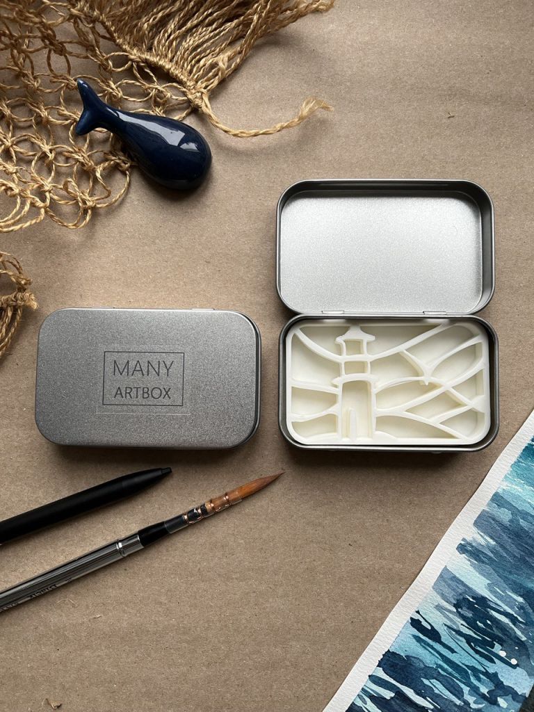 Очаровательные компактные палетки в оригинальном дизайне — это настоящая находка для тех, кто ищет подарок художнику или сам увлекается акварельной живописью. Палетка представляет собой небольшую металлическую коробку с крышкой. Внутри коробочки находится разделитель для красок различного цвета, созданный в необычном формате — в зависимости от модели это могут быть горы, домики и прочее. Палетки поставляются без красок, вы можете самостоятельно наполнить их любимой цветовой гаммой получателя, спрятать в них небольшой сюрприз или оставить как есть. Идеальный аксессуар для пленэров и зарисовок в путешествиях!