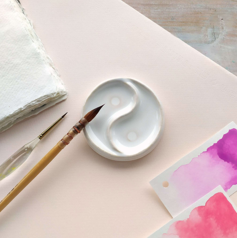 Палитра керамическая "ИНЬ ЯН" для смешивания водорастворимых красок, выполнена в виде восточного символа гармонии и равновесия жизни. Палитра диаметром 7,5 см. имеет 2 отделения для смешивания красок, супер легкий вес - 100 грамм, и защитные силиконовые ножки на тыльной стороне. Палитра поставляется в индивидуальном мешочке для хранения и транспортировки. Технические характеристики: материал : керамика, глазурь белая глянцевая упакована в текстильный мешочек для хранения и транспортировки диаметр: 7,5 см. вес: 100 грамм силиконовые ножки Особенности ухода за палитрой: Рабочая, глазурованная часть палитры легко очищается при помощи воды и мыла. При работе с масляной краской, остатки можно удалить с помощью растворителя. Тыльная часть палитры-не покрыта глазурью и может впитывать пигмент. Палитру не рекомендуется мыть в посудомоечной машине и чистить рабочую поверхность абразивными средствами. В течении времени на поверхности глазури может (*в редких случаях) появиться кракле (микро трещины), но не всегда. Это особенность материала и технологии. Это не влияет на целость палитры и не является браком.