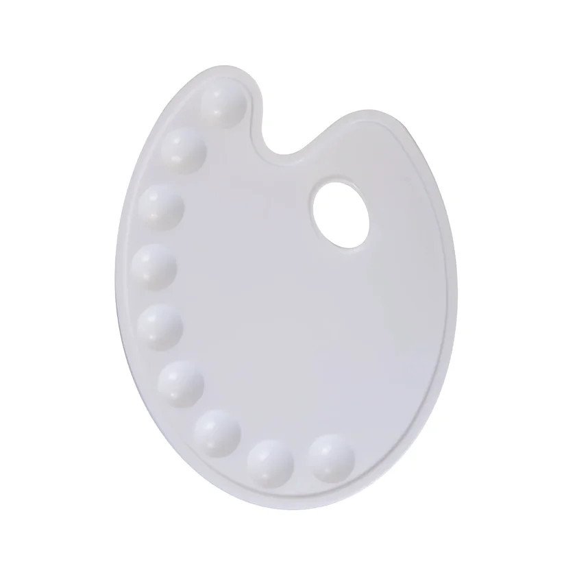 Палитра - это один из основных инструментов в арсенале художника, который предназначен для смешивания красок в целях получения уникальных цветов и оттенков. Палитры выполненные из пластика обладают малым весом и высокой прочностью, что является основополагающими качествами при выборе данного инструмента. Данная модель имеет овальную форму, оснащена 9 углублениями и отверстием для большого пальца.