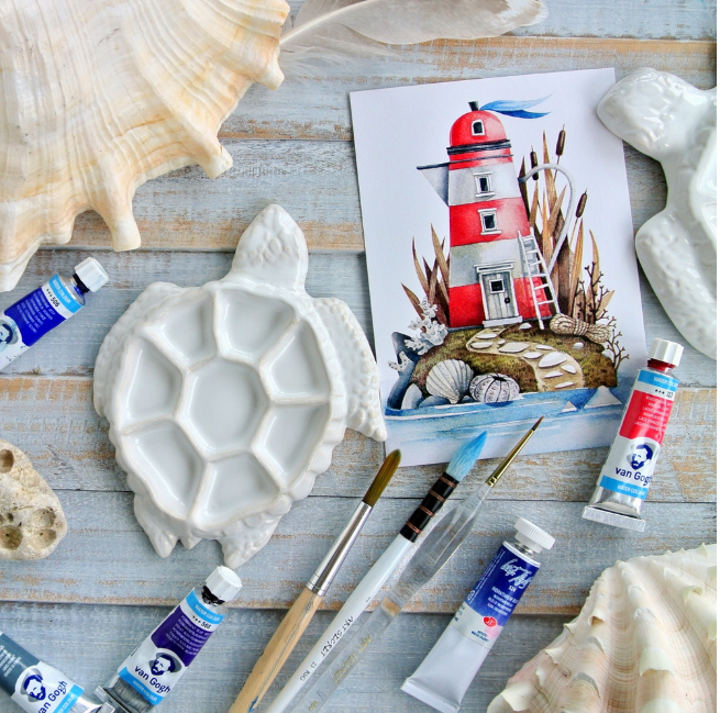 Палитра художественная "ЧЕРЕПАШКА" МИНИ, предназначена для смешивания красок акварели, гуаши, акрила. Эта компактная модель палитры спроектирована для работы с несколькими цветами одновременно, имеет 8 изолированных друг от друга, отделений. Легковесна 150 грамм, удобно брать с собой. Палитра изготовлена из керамики и покрыта белоснежной глянцевой глазурью. Этот материал и покрытие идеально подходят для смешивания красок, так как поверхность не впитывает пигменты и легко моется. Срок службы такой палитры не ограничен. Обратите внимание, мешочек в комплект не входит. Характеристики: • Размер изделия : 14,5 см. х 12 см. • Размер рабочей области: 9,5 см. х 8 см. • Размер лунки: от 2,5 см до 3 см. • Вес: 150 гр. • 8 лунок для смешивания красок • Легко моется, не впитывает пигменты, долговечна • Легко моется, не впитывает пигменты, долговечна • Идеально видны цвета краски • СПЕЦИАЛЬНАЯ СЕРИЯ ДЛЯ СКЕТЧИНГА И ПЛЕНЭРОВ Особенности ухода за палитрой: Рабочая, глазурованная часть палитры легко очищается при помощи воды и мыла. При работе с масляной краской, остатки можно удалить с помощью растворителя. Тыльная часть палитры-не покрыта глазурью и может впитывать пигмент. Палитру не рекомендуется мыть в посудомоечной машине и чистить рабочую поверхность абразивными средствами. В течении времени на поверхности глазури может (*в редких случаях) появиться кракле (микро трещины), но не всегда. Это особенность материала и технологии. Это не влияет на целость палитры и не является браком.